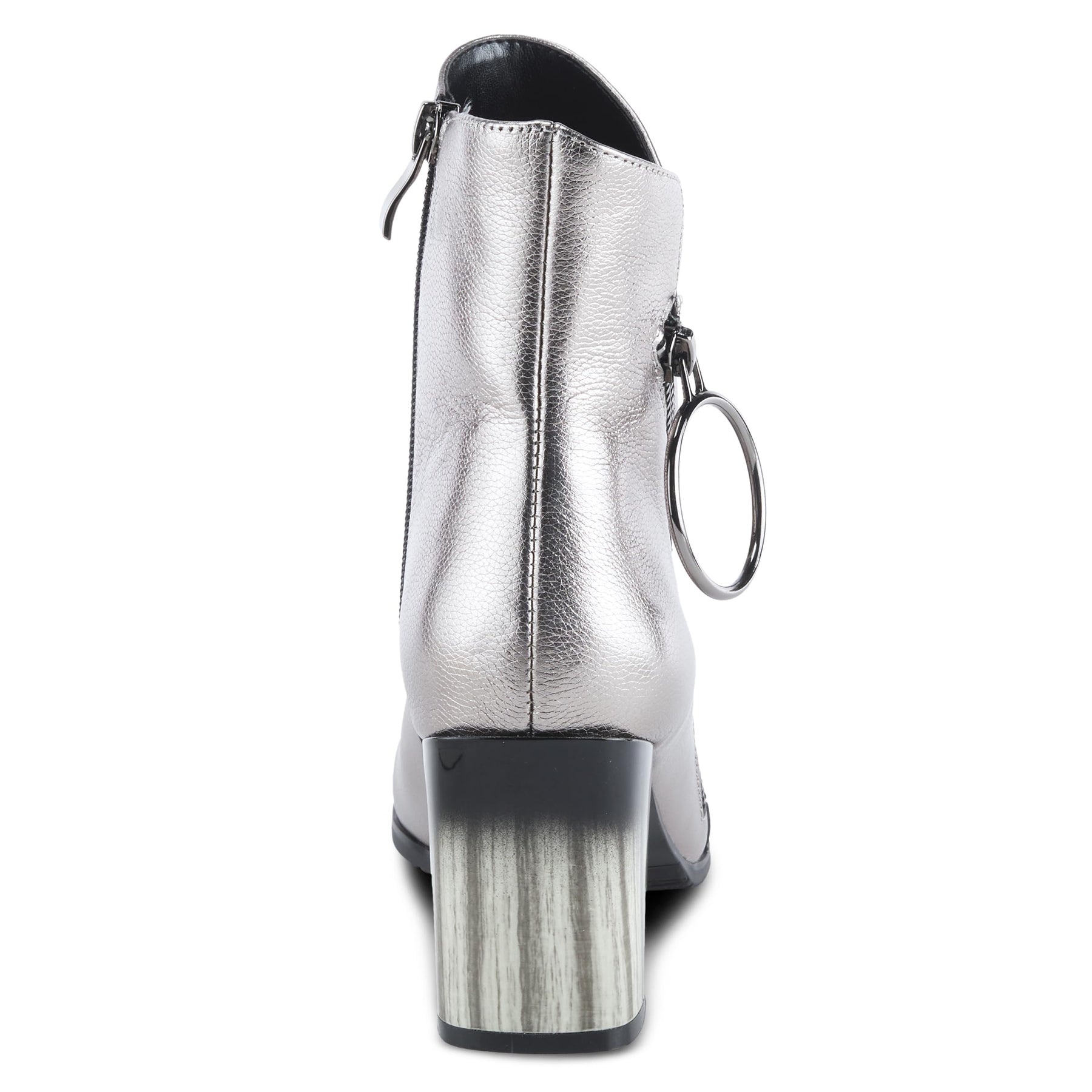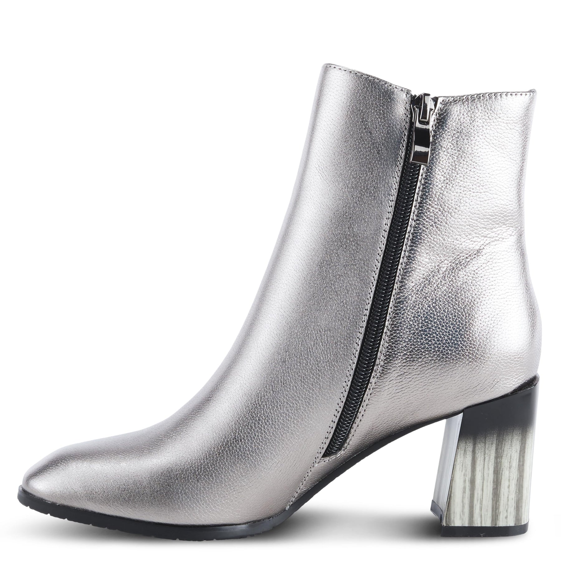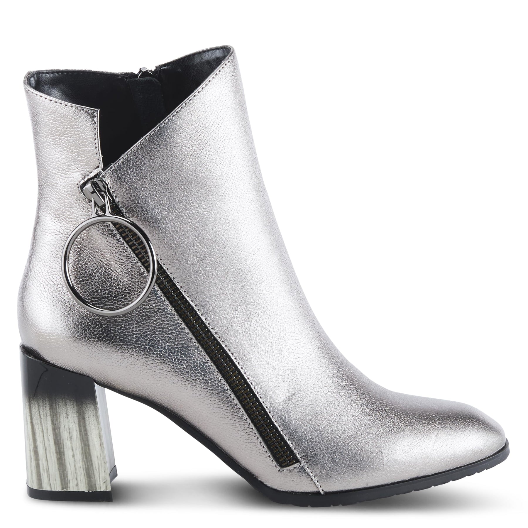 Azura Spring Step Fabulosa V Collar Ankle Boots for Women - Premium Leather Women's Chelsea Boots with Side Zippers - Pewter EU 37 / US 6.5-7