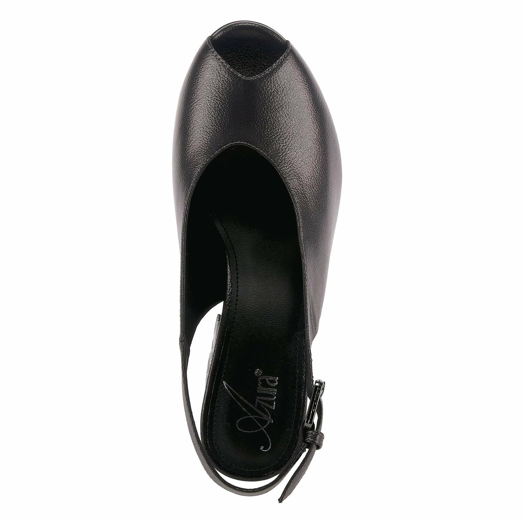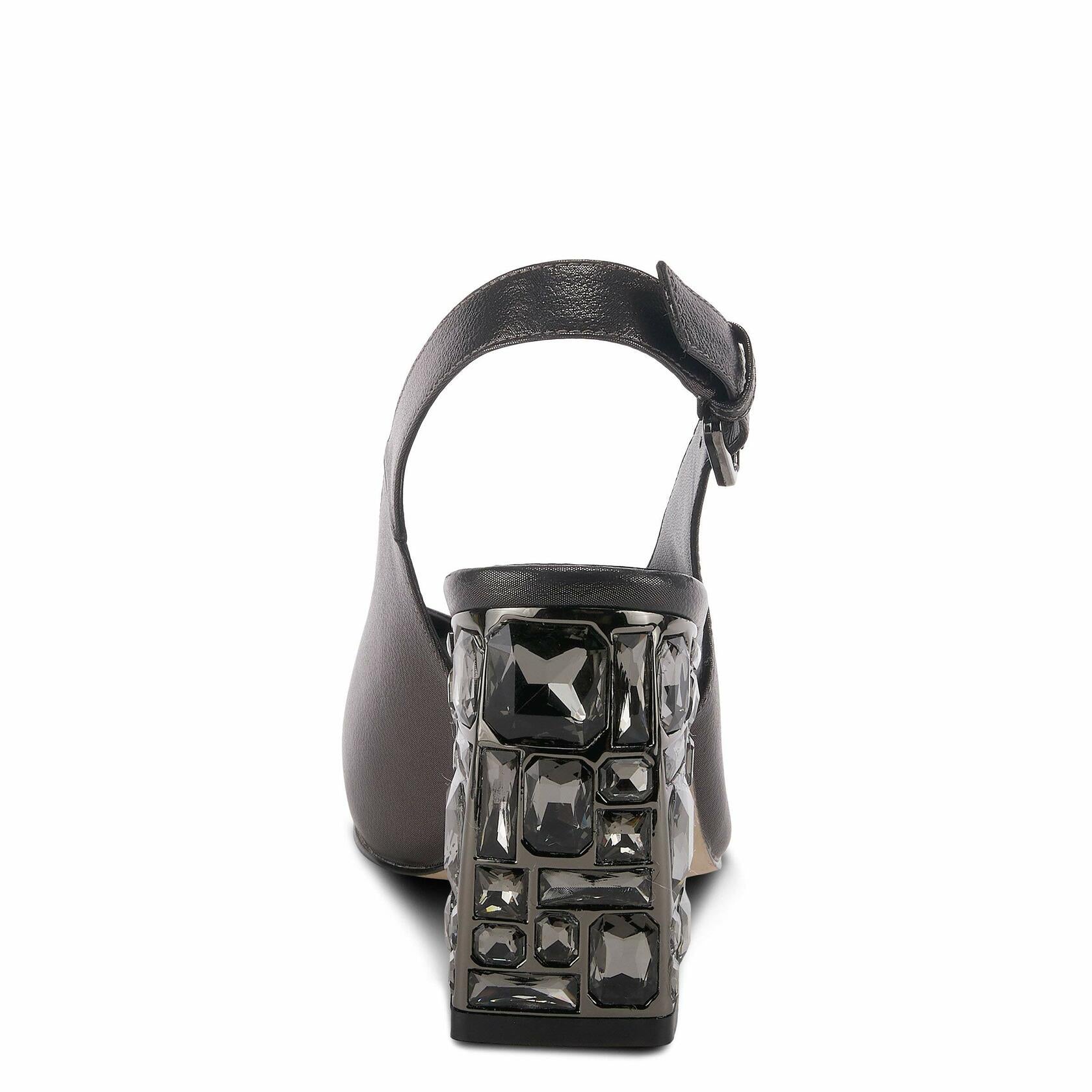 • Azura Style: Dazzley Stylish slip-on backstrap heel featuring beautiful metallic pebbled leather, a cross strap in contrasting color with a large decorative leather buckle on a sculpted comfort heel.