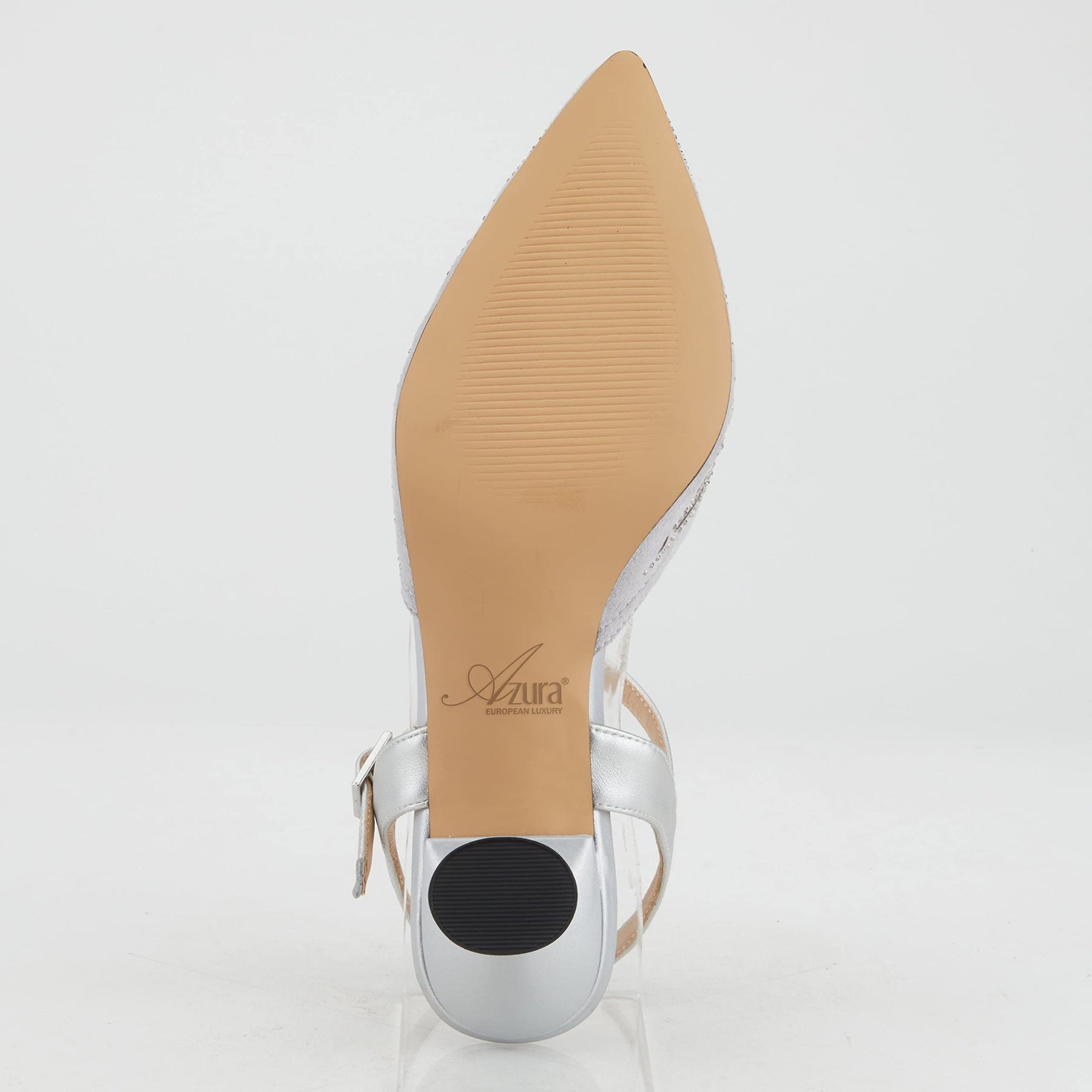 Elevate your style with the Azura Women's DELICATE Pumps, featuring a dazzling rhinestone-embellished upper and a striking hourglass heel. Designed for those who love a touch of glamour, these elegant pumps add sophistication to any outfit, whether for a night out, a wedding, or a formal event. The pointed-toe design enhances the sleek silhouette, while the adjustable buckle closure ensures a secure and personalized fit. Crafted with high-quality materials, including a leather insole for comfort and a durable rubber outsole, these heels provide both style and wearability.