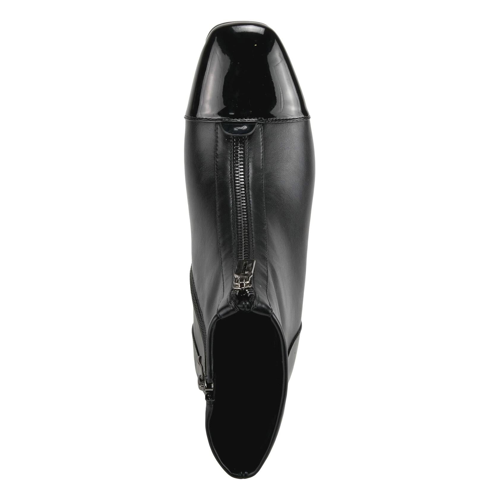 Azura Style: Mozza Vintage 70's go-go boot vibed patent cap-toe and back, with shiny metallic pewter edged heel and front decorative zipper. Soft manmade leather upper with inside zipper, short cropped faux fur lining and padded velour footbed. Heel: 2" Boot shaft: 5" Boot circum.: 9 1/2" Features: - Upper: Patent, Synthetic - Upper Finishing: Semi-gloss, Gloss - Heel type: Architectural, Block, Chunky - Lining: Faux Fur, Synthetic Leather - Insole: Textile - Outsole: Rubber - Toe type: Square toe, Closed toe - Pattern: Solid, Multi - Accents: Decorative zipper - Closure: Zipper - Features: Comfort, Flexible Sole, Padded Insole, Premium