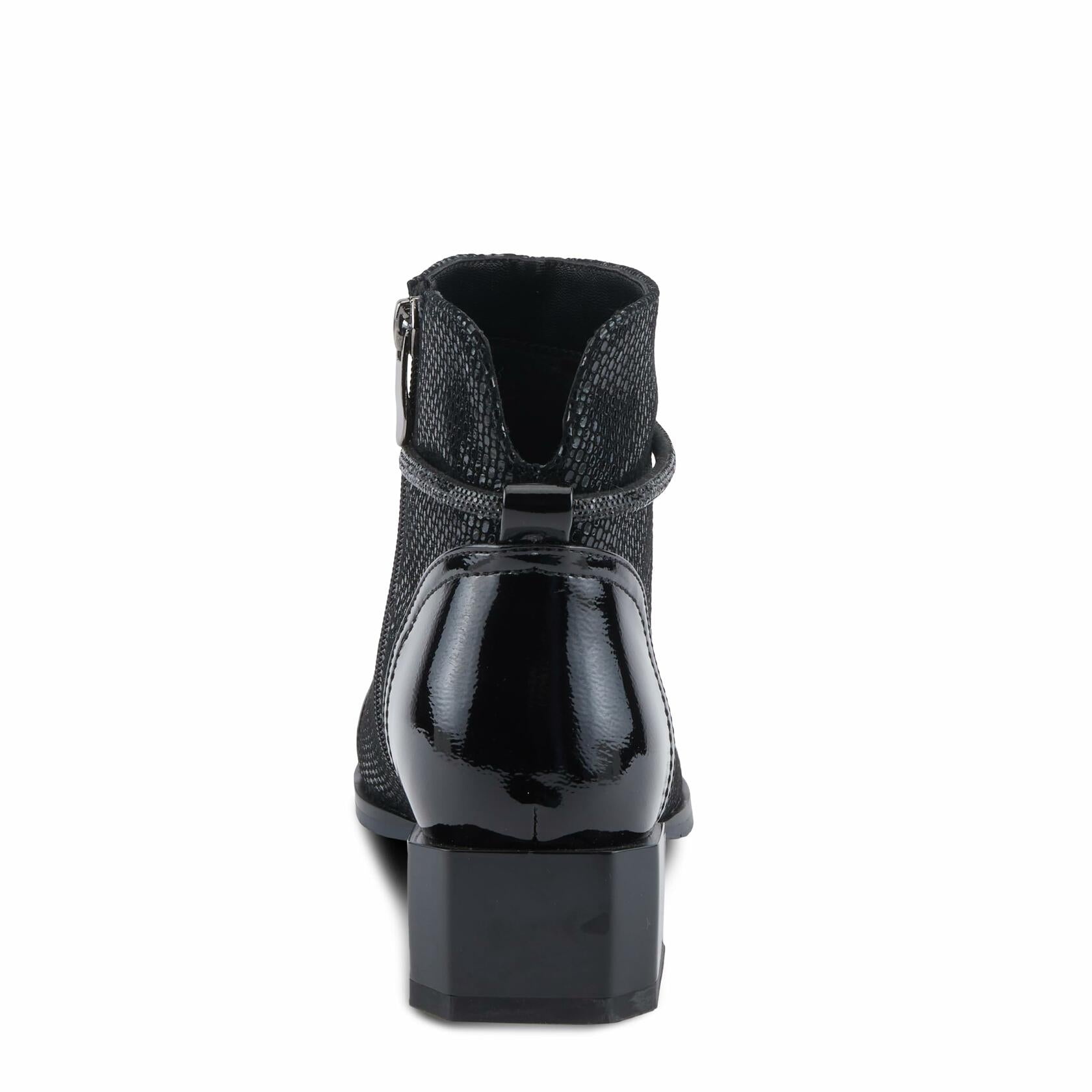 Showstopping Glamour with Azura SHELBI Booties - These booties feature a patent leather cap toe and crystal belt for a dazzling look. Perfect for making a statement. Key Features: Upper: Patent, Leather Combo, Lining: Faux Fur, Insole: Faux Fur, Outsole: Rubber, Closure: Zipper, Heel Height: 1 3/4", Shaft Height: 6", Circumference: 9 1/2". Glossy patent leather accents, shimmering ankle belt, and a dipped topline.