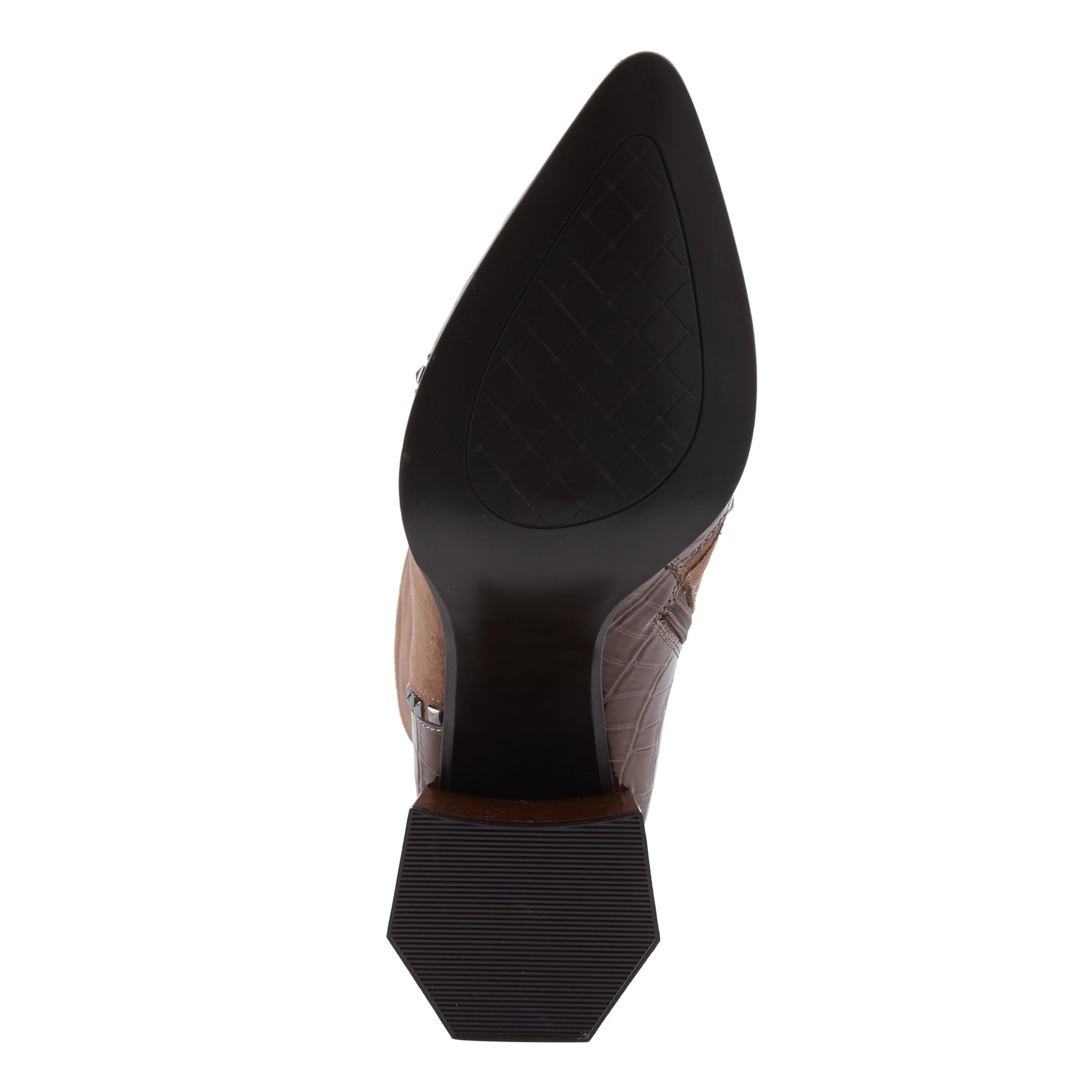 Description Fierce Style with Azura ZAYRINA Boots - These boots feature a combination of textures and prints for a powerful look. Perfect for making a statement. Key Features: Upper: Leather Combo, Lining: Faux Fur, Insole: Faux Fur, Outsole: Rubber, Closure: Zipper, Heel Height: 2 3/4", Shaft Height: 11 3/4", Circumference: 11 1/2". Mix of materials and animal prints, stud details, and an extended chunky heel.