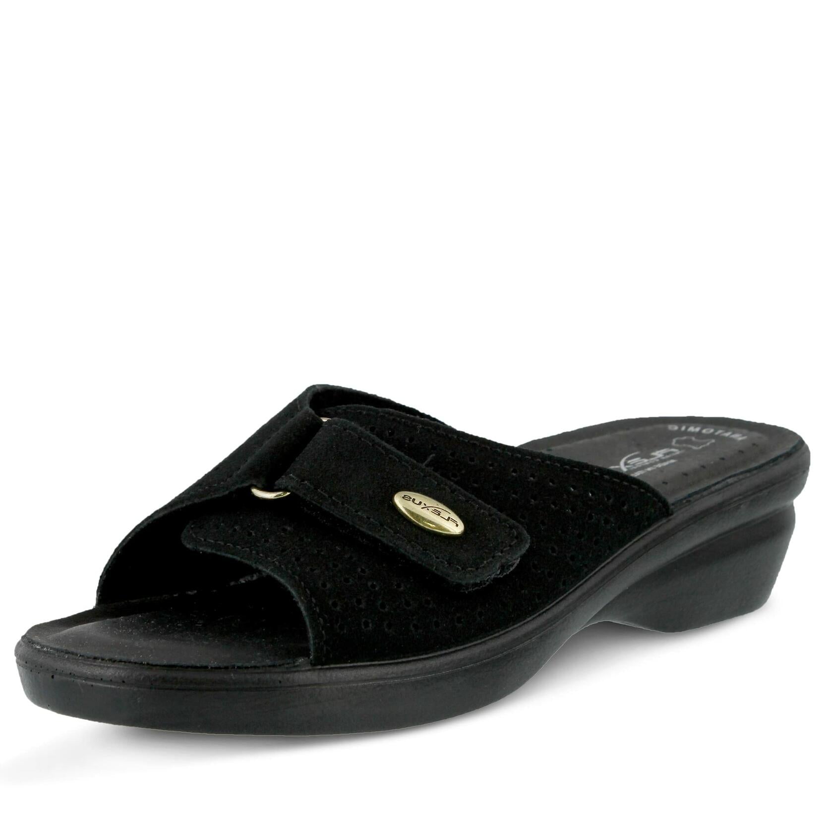 Experience unparalleled Italian craftsmanship and comfort with the Flexus Women's KEA Slide Sandals. Meticulously crafted from soft, perforated leather, these slides offer superior breathability, making them ideal for all-day wear. An adjustable hook-and-loop strap ensures a customizable fit, while the leather-padded anatomic footbed supports your arches for lasting comfort. The flexible, slip-resistant polyurethane outsole provides reliable traction and shock absorption, making the KEA your go-to choice for stylish comfort whether you're at home, on errands, or enjoying leisurely outings.