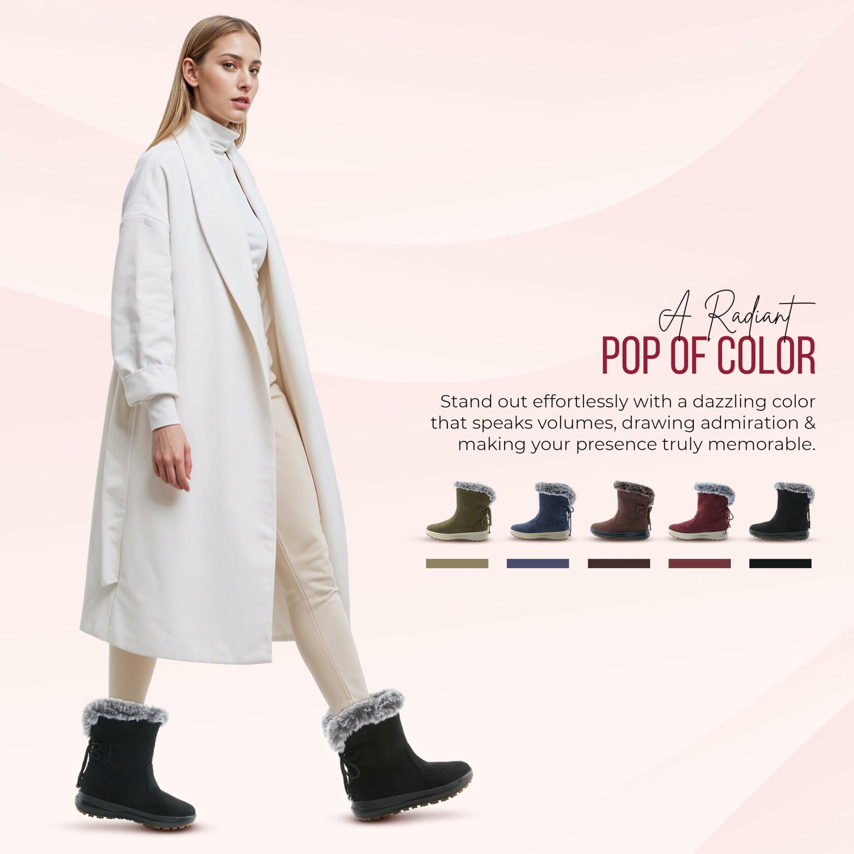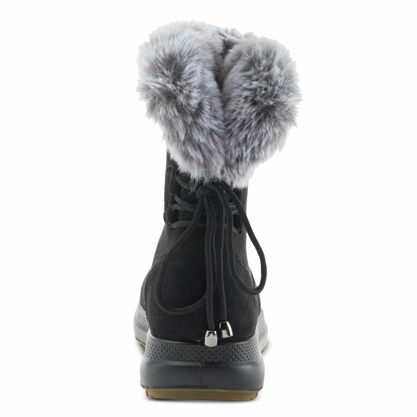 Flexus Snowbird Mid-Calf Boot - Waterproof Microsuede Upper Faux Fur Lining - Slip-On Padded Insole Flexible Polyurethane Outsole 1.5" Heel Cozy Winter Bootie Black EU 36 / US 5.5-6