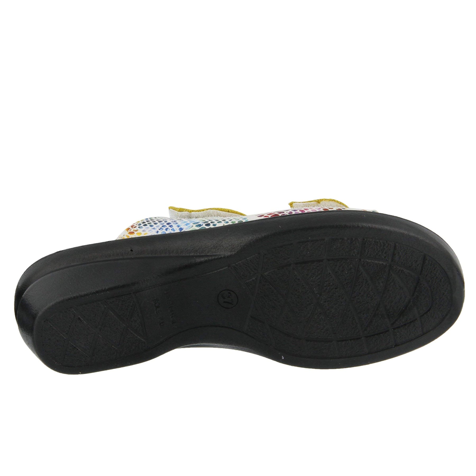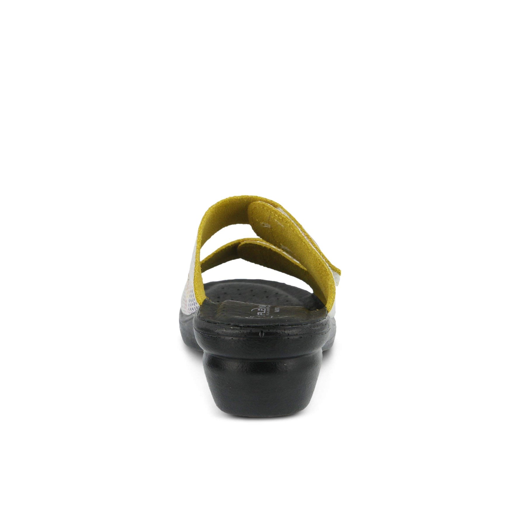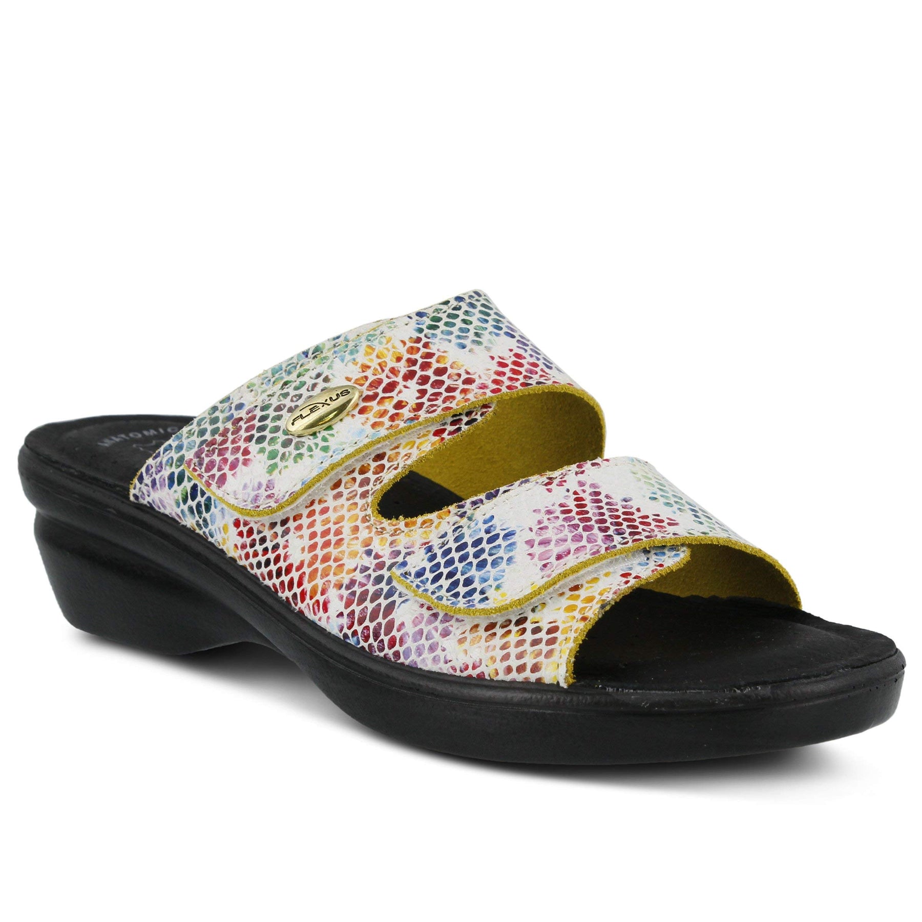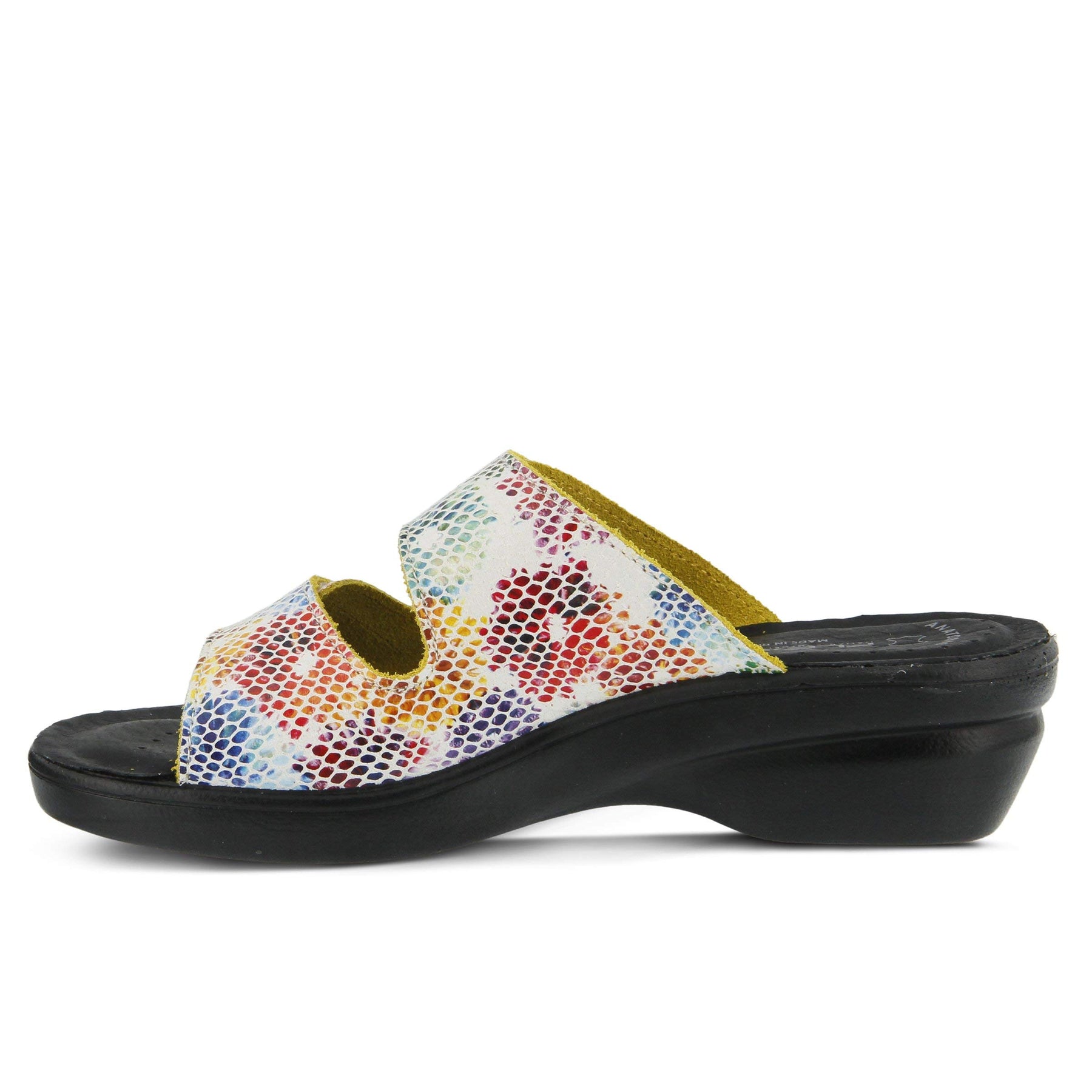 Italian made, printed leather slide sandal. Heel Height (approximately): 1 3/4 inch.