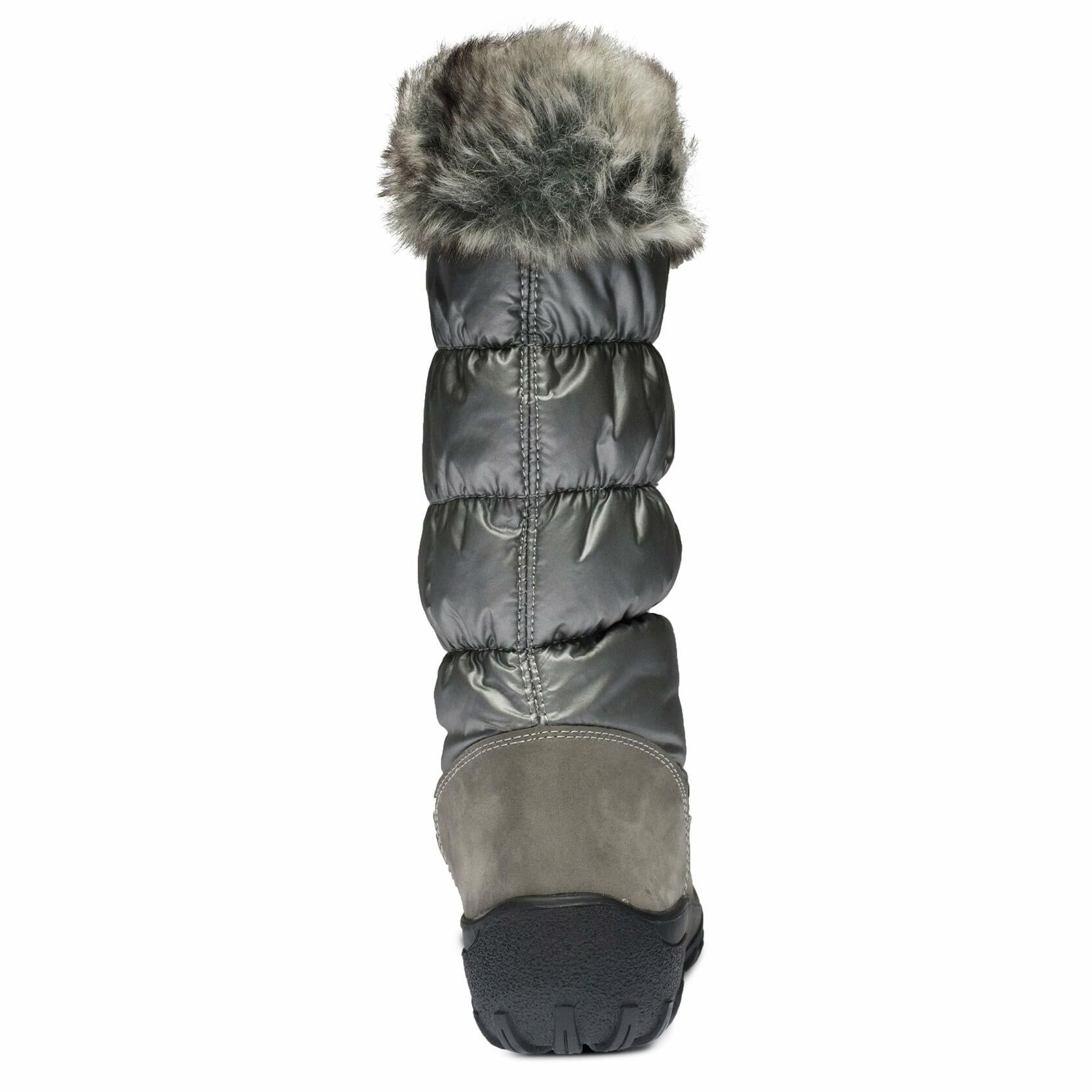 Spring Step Style: Vanish Waterproof quilted nylon pull-on winter boot with faux fur collar. Heel Height (approximately): 2" Shaft Height (approximately): 11" Circumference (approximately): 14 1/2" Features: -Round toe, high quality nylon, lug sole. -Inside zipper closure. -Faux shearling lining. -Soft textile, comfort padded insole. -TPR outsole. -Imported.