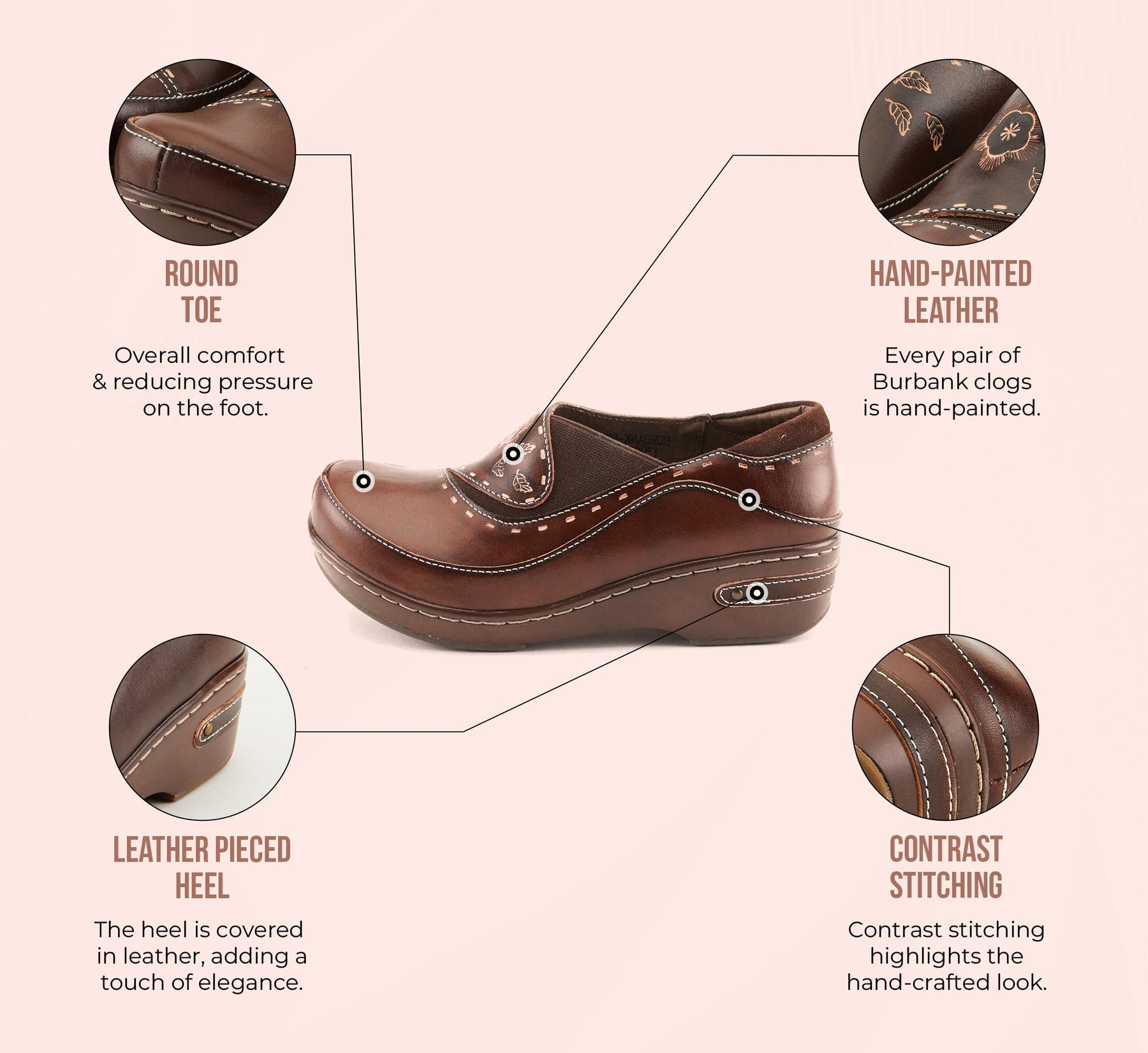 Product Description Hand painted, closed-back, leather clog with elastic piecing and contrast embossed floral design. From the Manufacturer Designed with the quality and craftsmanship of true European tradition, Spring Step combines comfort, technology and fashion to bring you everything that is important in a shoe. Driven by the mission to deliver a product that provides an extraordinary experience for your feet, Spring Step makes that same experience available for every occupation in your life. Providing the ultimate in walking pleasure from casual comfort to fashion contemporary, Spring Step has the answer. Spring Step's extensive collections offer the total footwear solution.
