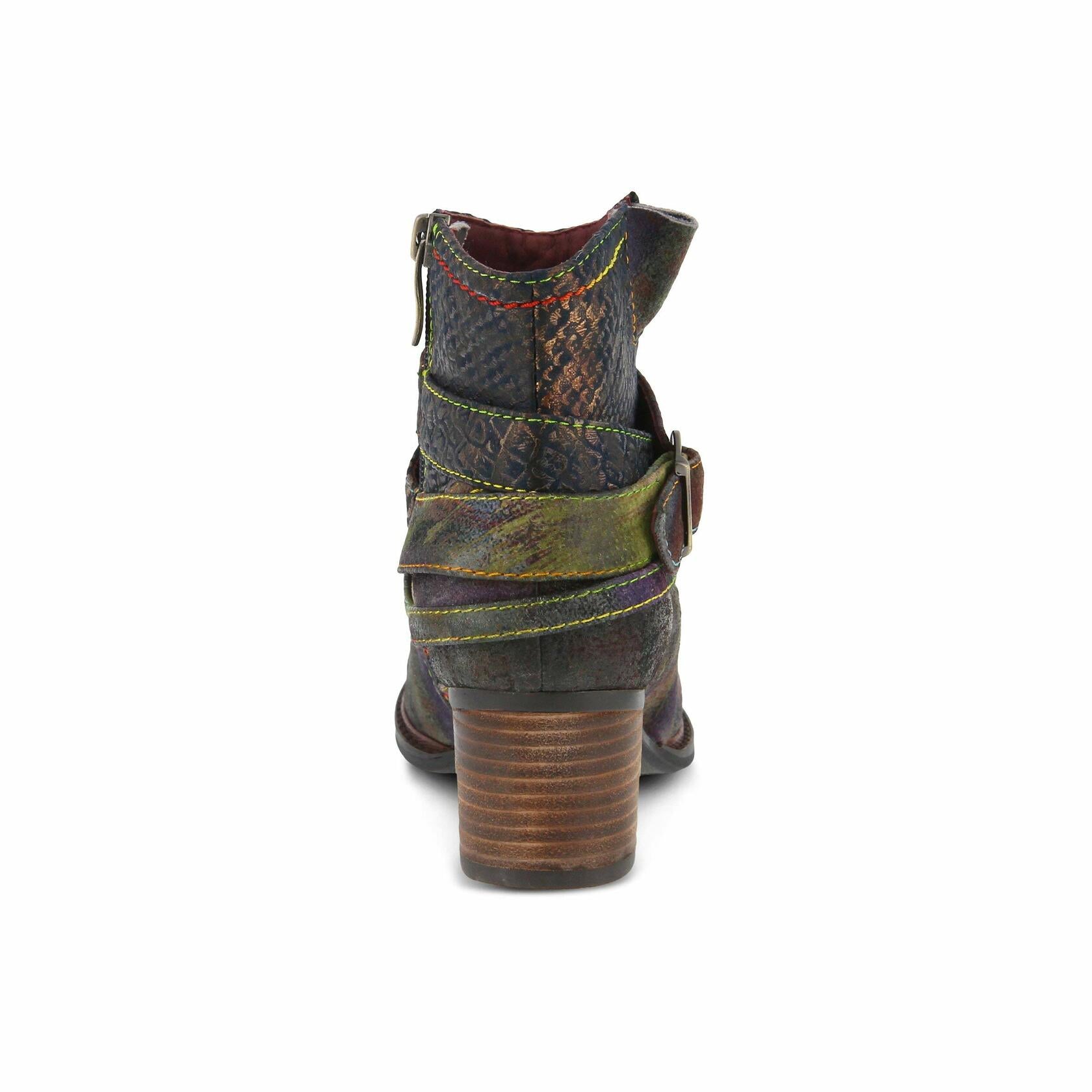 French inspired, hand painted leather combination buckle bootie.