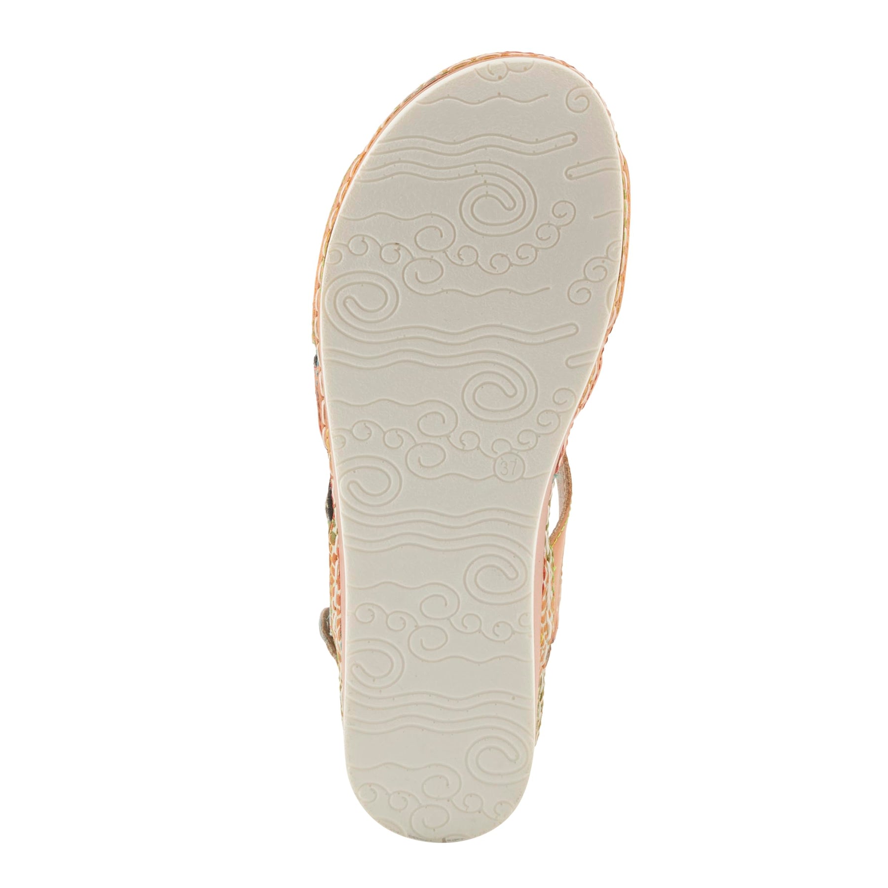 French inspired design, hand painted leather sandal featuring unique color blocking and fashioned with a metal flower button.