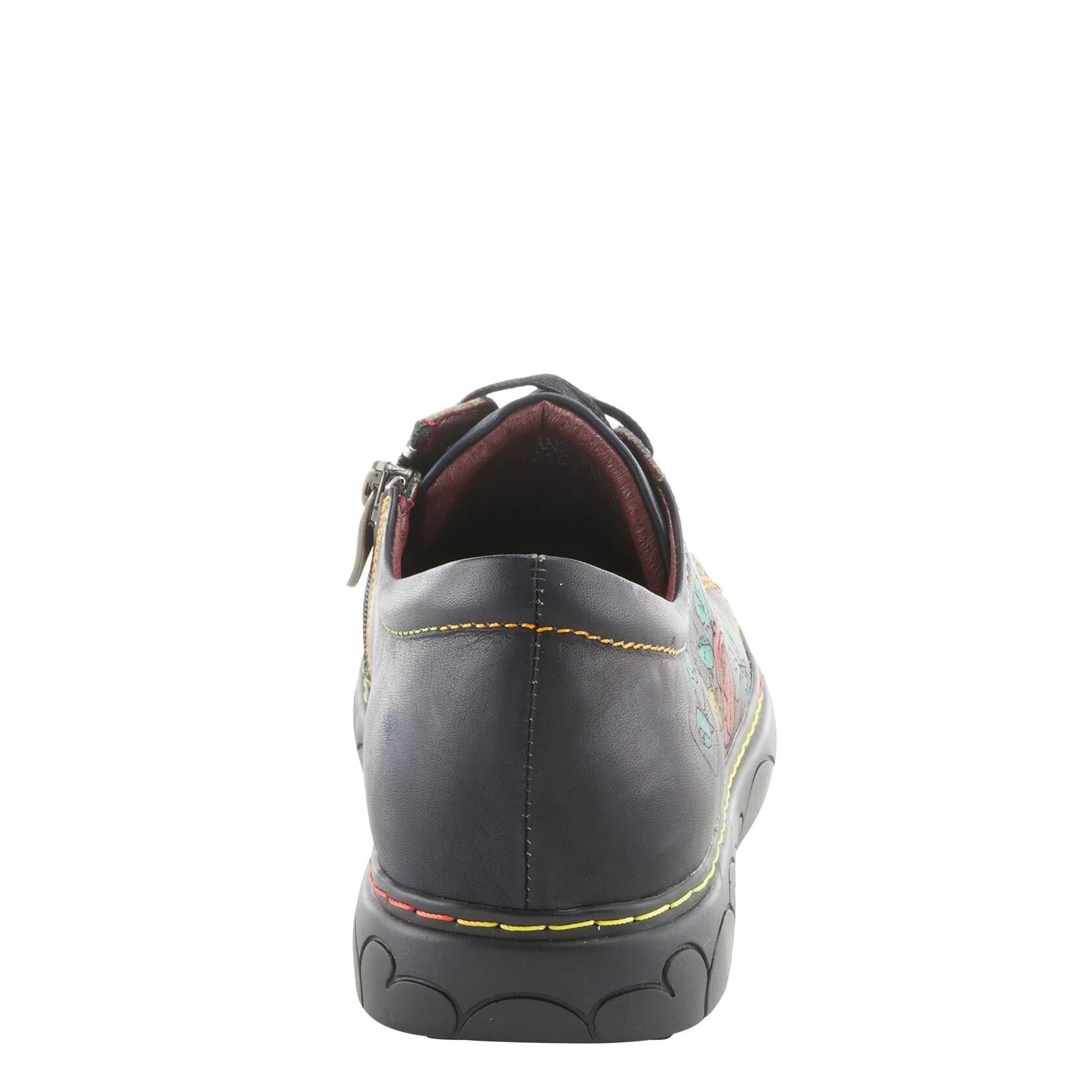 L`Artiste Style: Ilnad French inspired zippered sneaker, featuring hand-painted leather with a beautiful rose detail on the outside, lace-up closure with lace keeper, vibrant rainbow stitching, and a padded comfort collar and removable footbed all on flatform edged in rainbow stitching. Upper: Leather Lining: Synthetic Insole: Synthetic Outsole: Rubber Closure: Lace-up, Zipper Heel Height: 1 1/4" Platform Height: 1 " Features: - Adjustable, Comfort, Flexible Sole, Hand-painted, Padded Insole, Premium, Removable Insole Disclaimer: L'Artiste products are made with natural tanned leather using traditional hand painting techniques. This unique finishing process is used to create a natural effect with color variations to deliver authentic look and beauty.