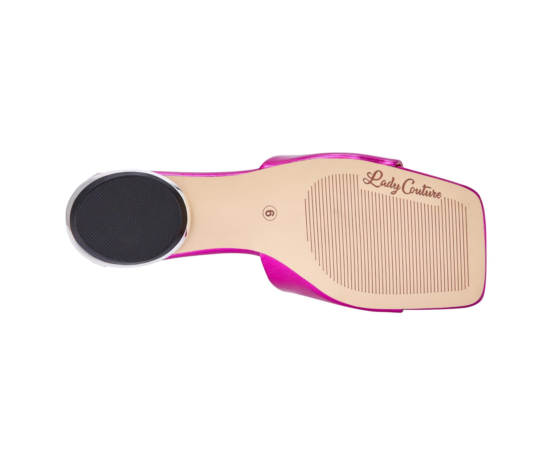 Lady Couture Amore Metallic Jewel Slide, Fuchsia, 6
