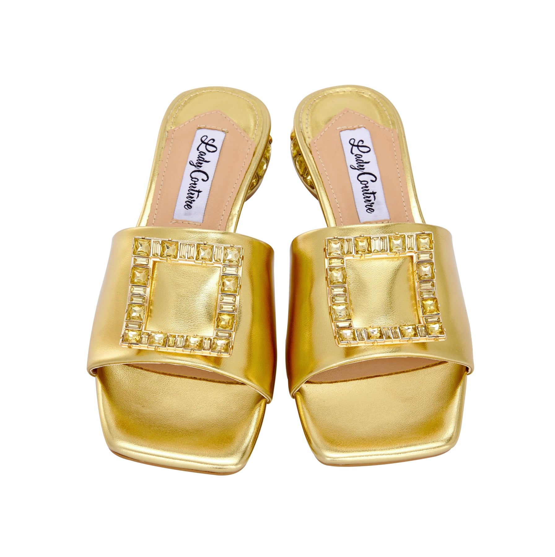 Lady Couture Amore Metallic Jewel Slide, Gold, 9