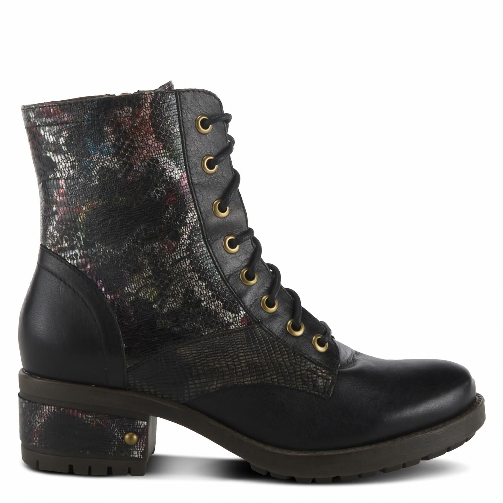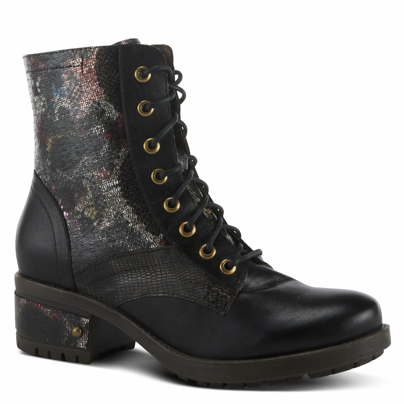L'Artiste by Spring Step Marty Met Hand Painted Metallic Floral Ankle Boots for Women | Shoes for Women with Arch Support and Flexible Sole Black Multi EU 39 / US 8.5