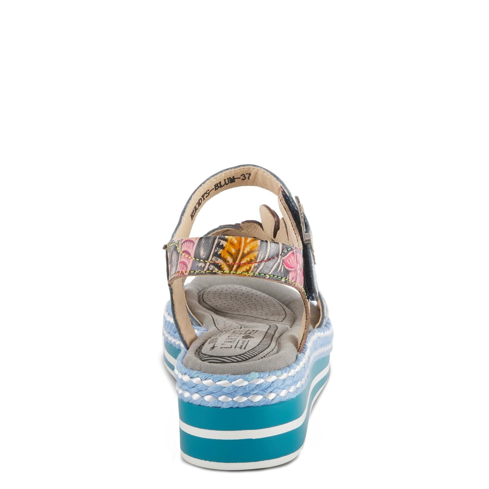 L'Artiste Style: RHODYS Super comfortable with a back strap and a trio of 3-dimensional flower petal embellishments combined with a printed floral upper. Features a hook and loop strap for ease. Upper: Leather Lining: Synthetic Insole: Textile Outsole: Polyurethane Closure: Hook&Loop Heel Height: 1.75" Platform Height: 1.25" Features: - Adjustable, Comfort, Footbed, Padded Insole Disclaimer: L'Artiste products are made with natural tanned leather using traditional hand painting techniques. This unique finishing process is used to create a natural effect with color variations to deliver authentic look and beauty.