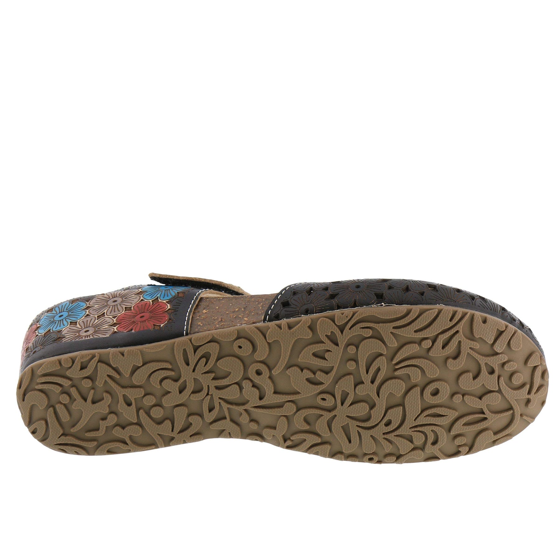 *French-inspired and hand-painted premium leather upper with floral laser etching and cutout design *Adjustable hook-and-loop instep strap with an antiqued brushed metal ornament *Lightly cushioned footbed *Durable rubber sole *1-3/4" cork- and latex-wrapped wedge heel with platform *Please see size drop-down menu for brand-specific Euro conversion chart