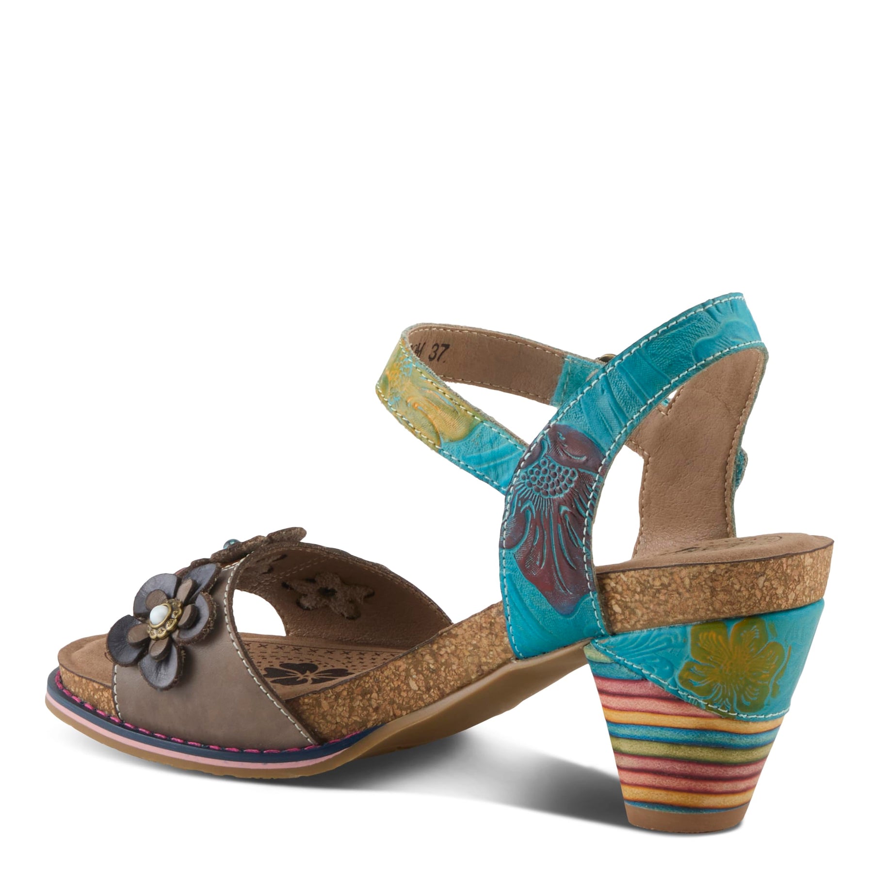 Description Blossom with style in the BLUESKY sandal. Featuring a leather upper adorned with a vibrant array of two-toned floral appliques, this open-toe beauty is a work of art for your feet. The embossed, hand-painted ankle strap with hook-and-loop closure provides a secure, customized fit, while the cork midsole and padded footbed deliver all-day comfort.