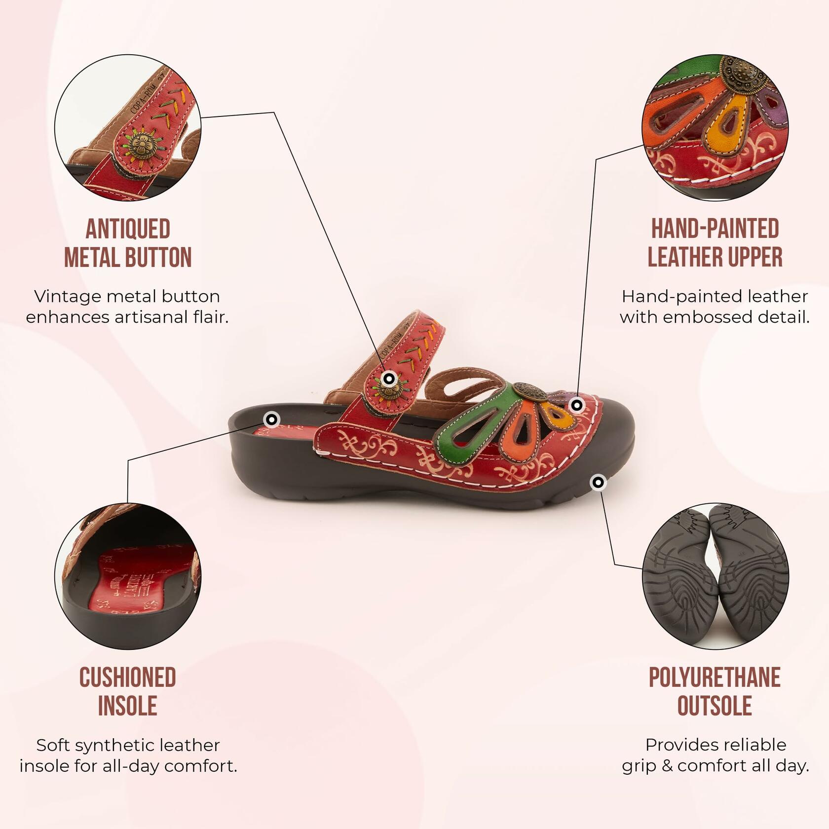 L'artiste by Spring Step Women's Copa Flat Sandal, Red/Multi, 41 EU/9.5-10 M US