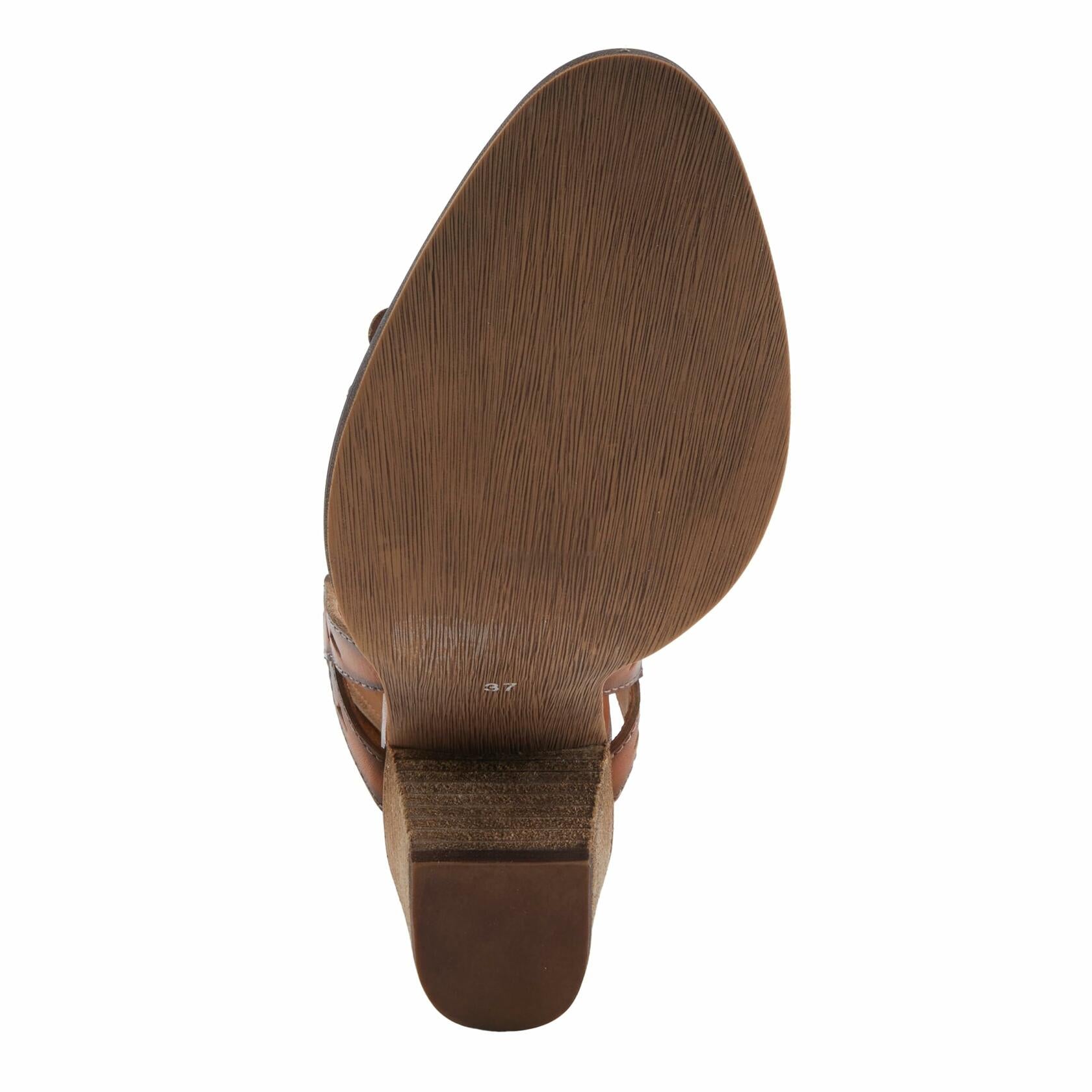 Description French inspired, beautiful hand-painted leather open back closed-toe shoe featuring floral laser cutout and etching pattern, an adjustable hook and loop back strap, and a floral applique design all on an stacked, comfort heel.