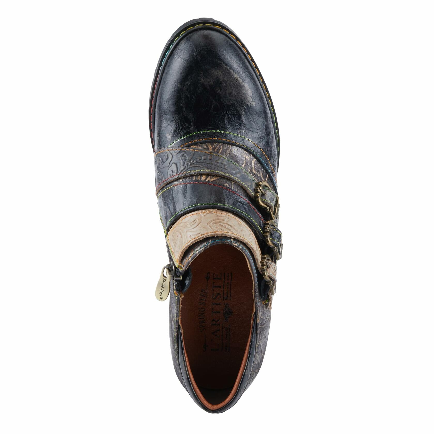 Description This shootie is a stunning combination of vintage and modern styles. The hand-painted floral material adds a touch of femininity, while the 3-layer decorative antique buckle provides a unique and eye-catching element. The stacked heel and rainbow stitching add to the overall charm and personality of this beautiful shoe. The shoe’s premium padded insole provides exceptional comfort and support for all-day wear. Comfort, Flexible Sole. Hand-painted, Padded Insole, Premium, Textured. Disclaimer: L’Artiste products are made with natural tanned leather using traditional hand painting techniques. This unique finishing process is used to create a natural effect with color variations to deliver authentic look and beauty.