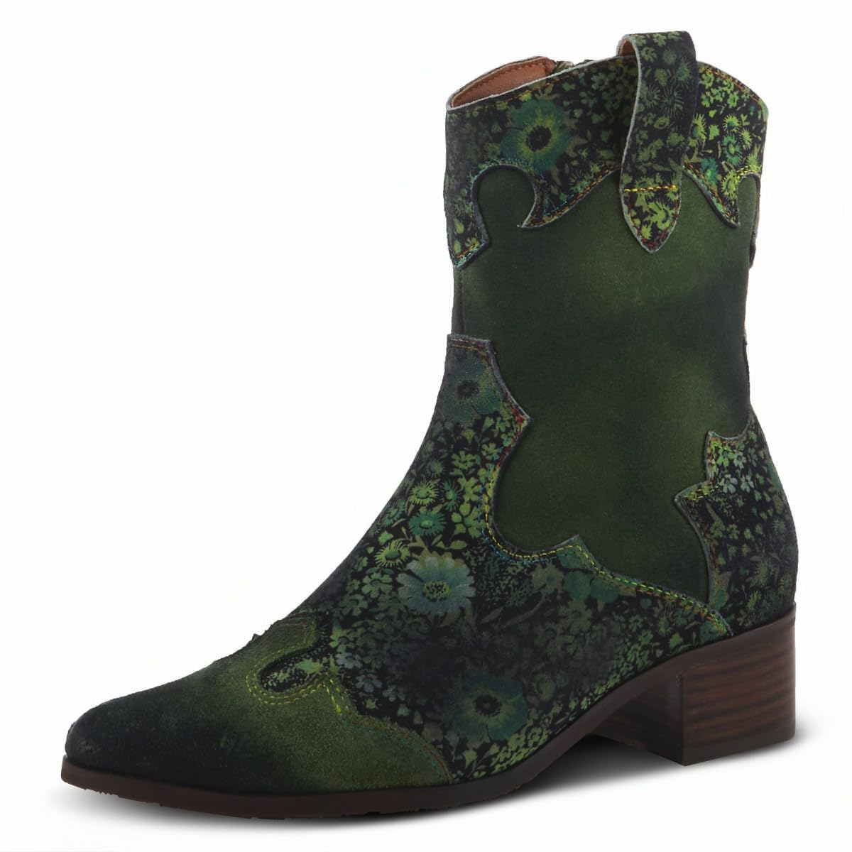 L'Artiste by Spring Step Women's Lady Luck Western Boot, Green Multi Suede, 6.5-7