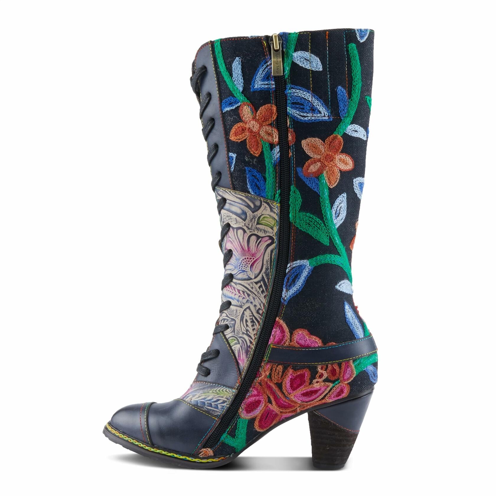 L'Artiste by Spring Step Women's Malagie-Rose Mid Calf Boot, Navy Multi, 10