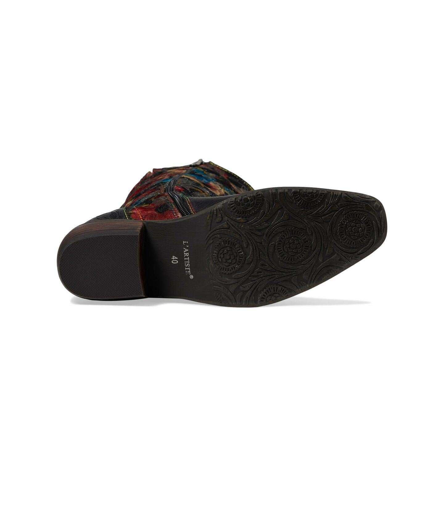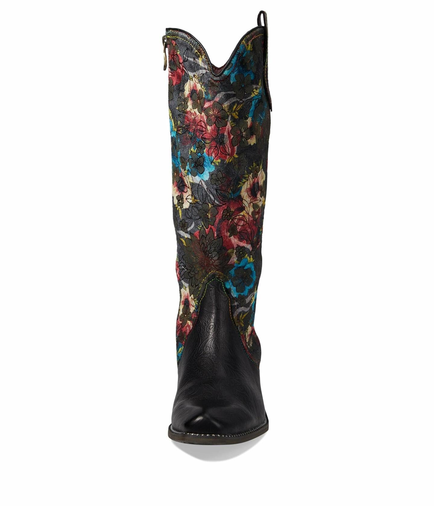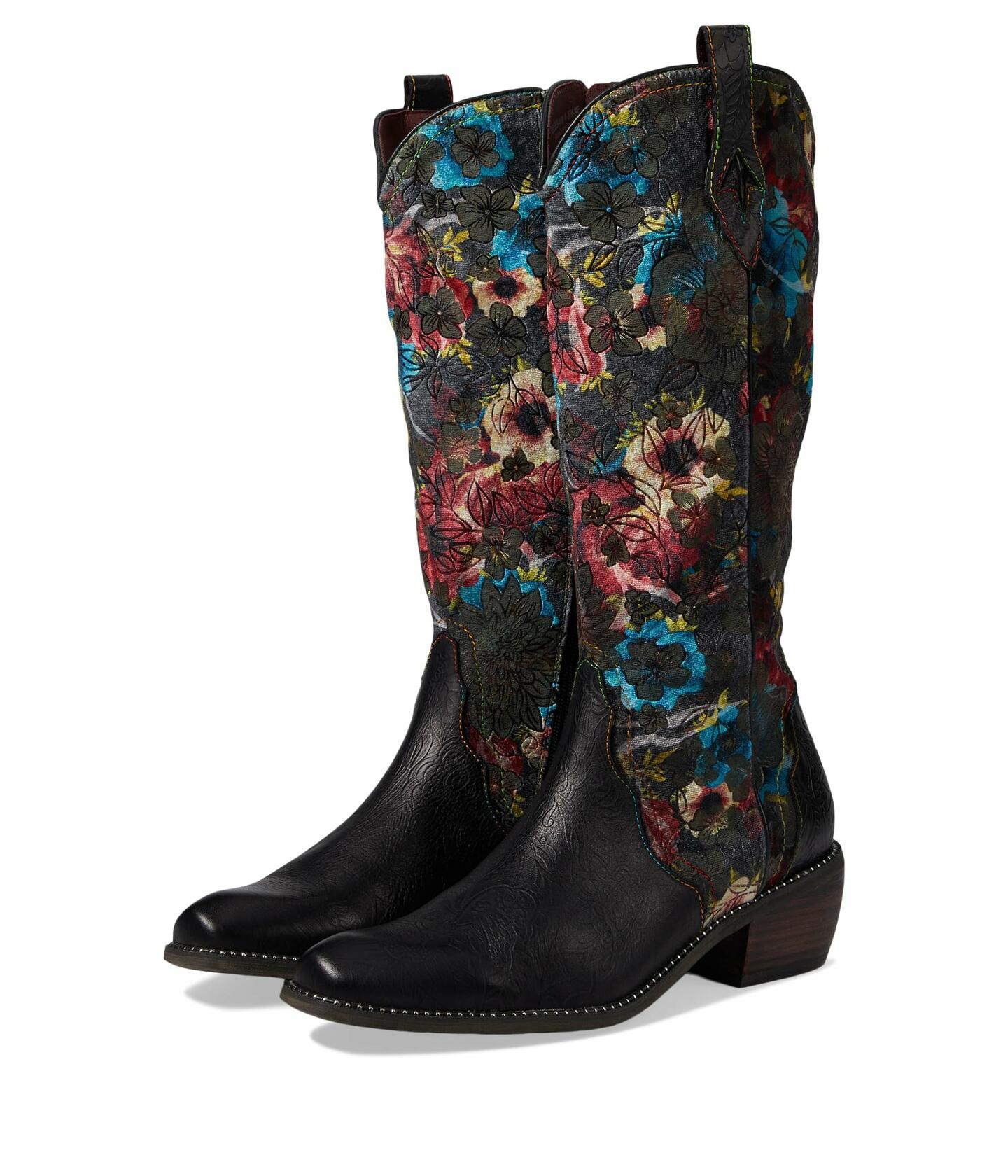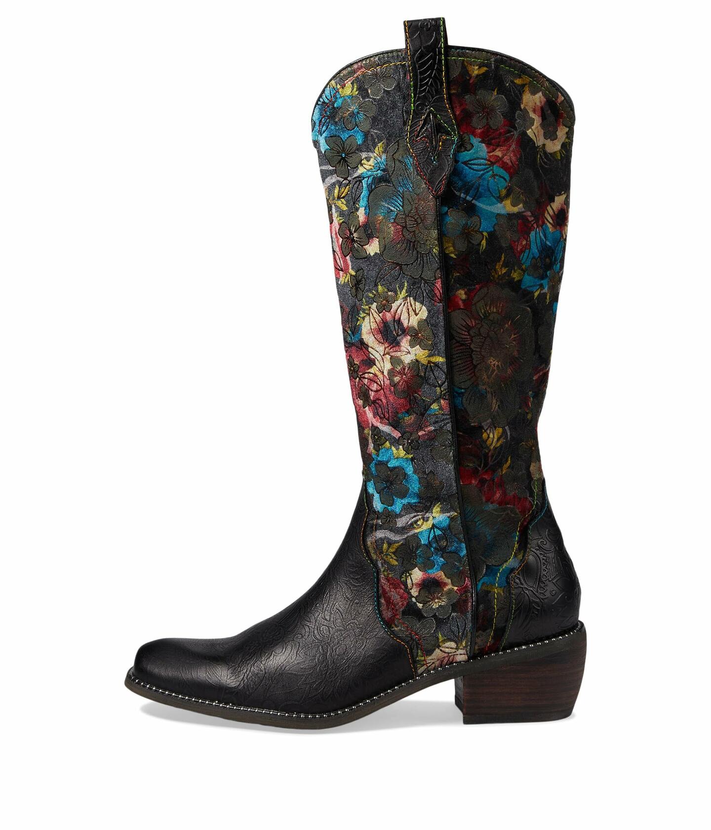 DescriptionWhether you're line dancing or just running errands, these boots let you channel your inner cowgirl chic. Slip them on with your favorite jeans or dress to add that perfect dose of western flair to any outfit. Saddle up and get ready to turn heads in the new RODEOQUEEN-VIV boots! Intricate tonal embossed designs on the front and back heel for eye-catching texture. Soft printed floral velvet shaft adds a feminine, romantic vibe. Snip toe front gives An authentic cowgirl look. Stacked wooden heel for that authentic cowboy silhouette with stability. Disclaimer: LArtiste products are made with natural tanned leather using traditional hand painting techniques. This unique finishing process is used to create a natural effect with color variations to deliver authentic look and beauty.