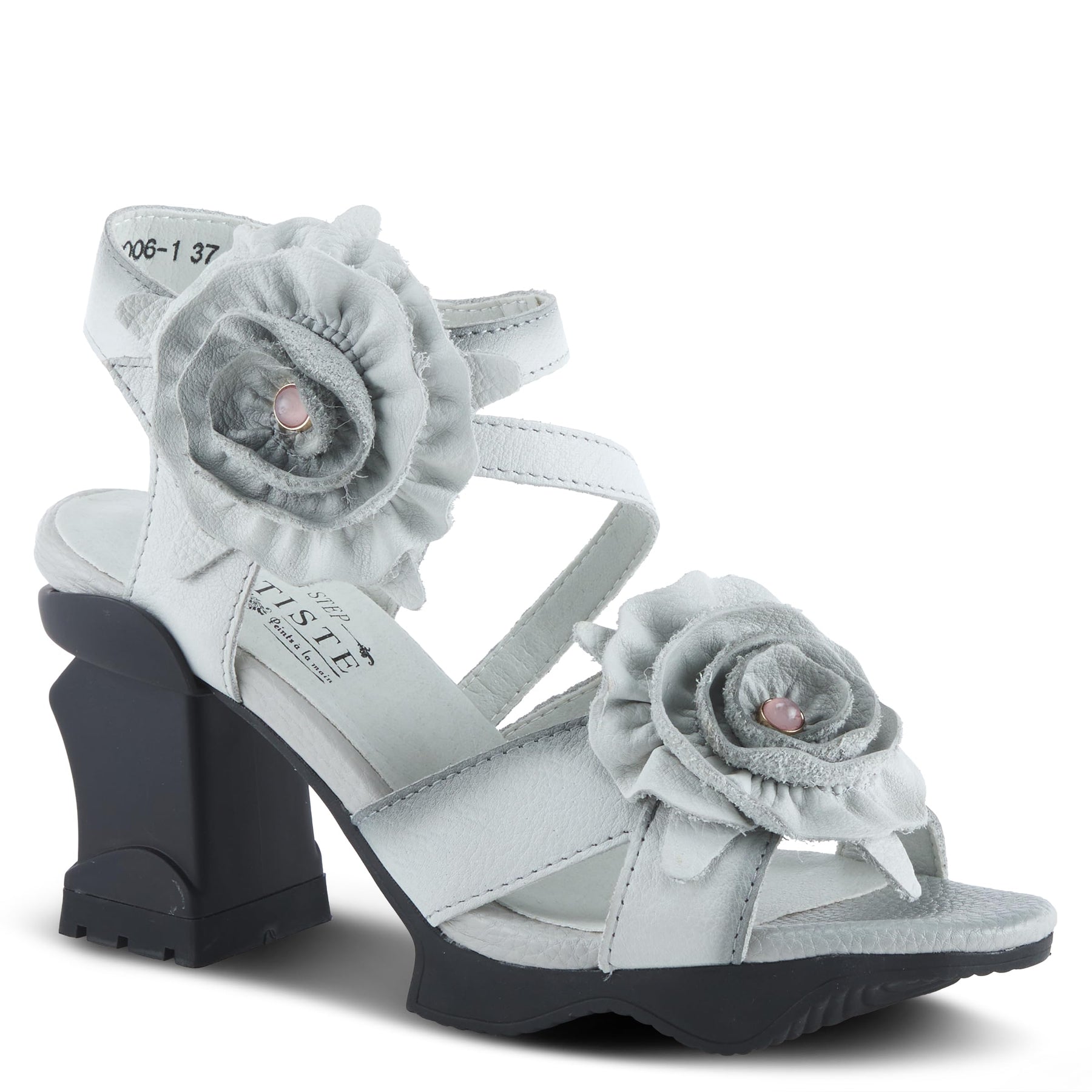 Description Be the ultimate drama queen in these outrageous L'Artiste by Spring Step Shelly asymmetrical hand-painted leather sandals with big, bold dimensional flowers and a funky sculpted platform and architectural heel. No matter the occasion, all eyes will be focused on these unique sandals! Heel Height (approximately): 3 1/4", 1" platform. Features: -High quality leather upper, round toe silhouette, tonal stitching, and architectural block heel. -Adjustable hook and loop ankle strap. -Synthetic leather lining. -Synthetic leather comfort padded insole. -Rubber outsole with flexible forefoot. -Imported. Disclaimer: L'Artiste products are made with natural tanned leather using traditional hand painting techniques. This unique finishing process is used to create a natural effect with color variations to deliver authentic look and beauty.