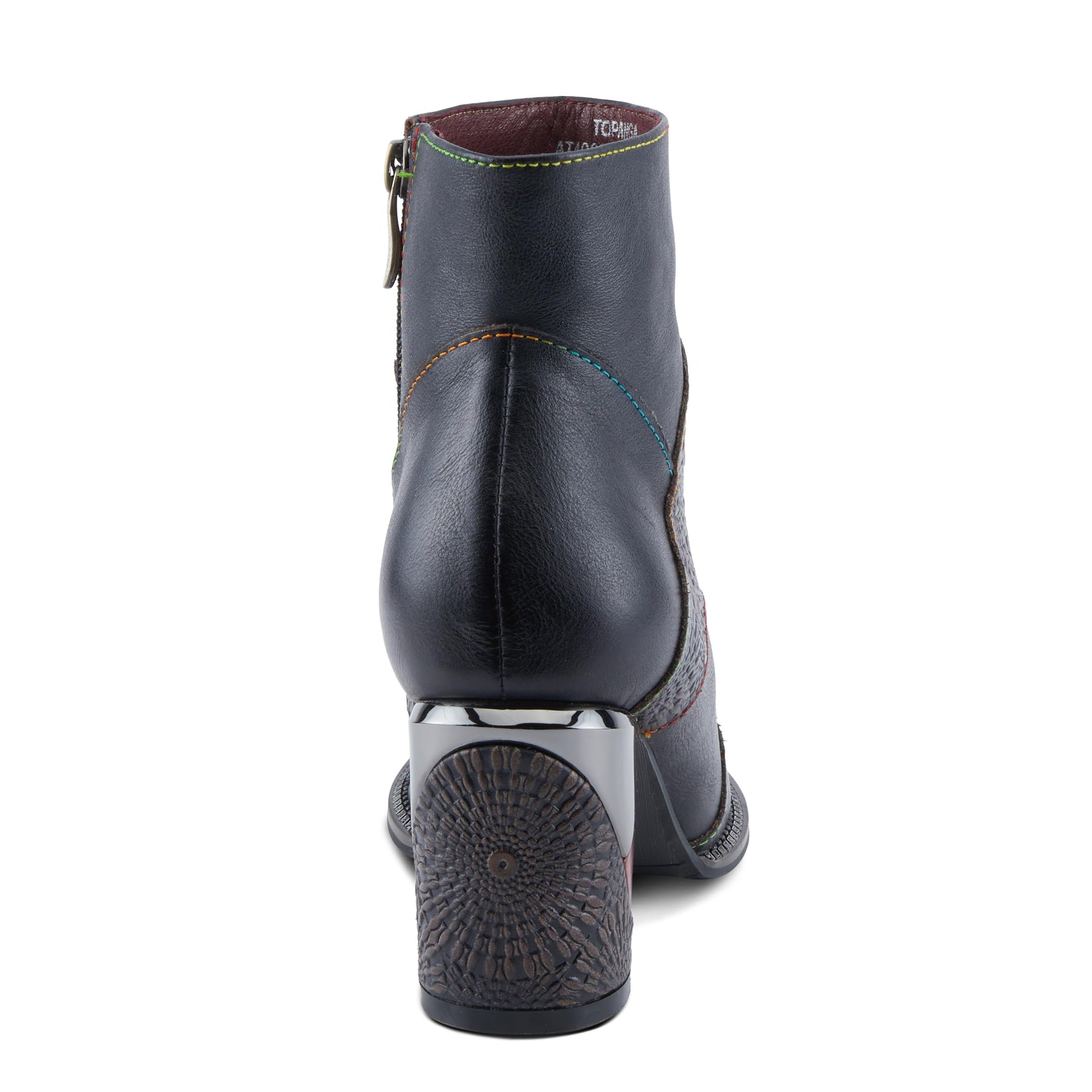 Description TOPANGA ignites the imagination with its dynamic flair! Elevate your style with these eye-catching booties that effortlessly blend artistry and sophistication. Striking leather bootie adorned with an embossed firework reminiscent design on the upper for a captivating look. The firework motif elegantly extends to the heel, creating a seamless and eye-catching design element. Cool typewriter design along the welt adds a touch of vintage-inspired charm and uniqueness. Convenient inside zipper closure allows for easy on and off, ensuring a hassle-free experience. Disclaimer: L’Artiste products are made with natural tanned leather using traditional hand painting techniques. This unique finishing process is used to create a natural effect with color variations to deliver authentic look and beauty.