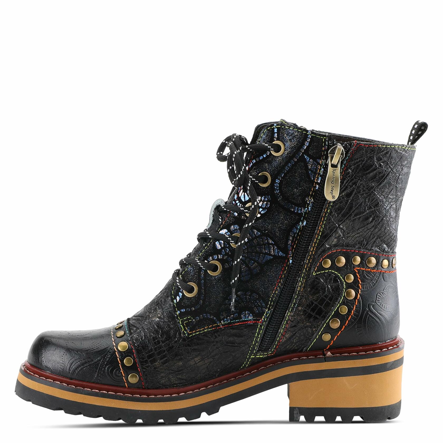 L'Artiste Rugup Leather Combination Booties for Women | Low Heel Ankle Boots for Women with Lace Up and Zipper Closure and Faux Fur Lining, Black Multi EU 39 / US 8.5