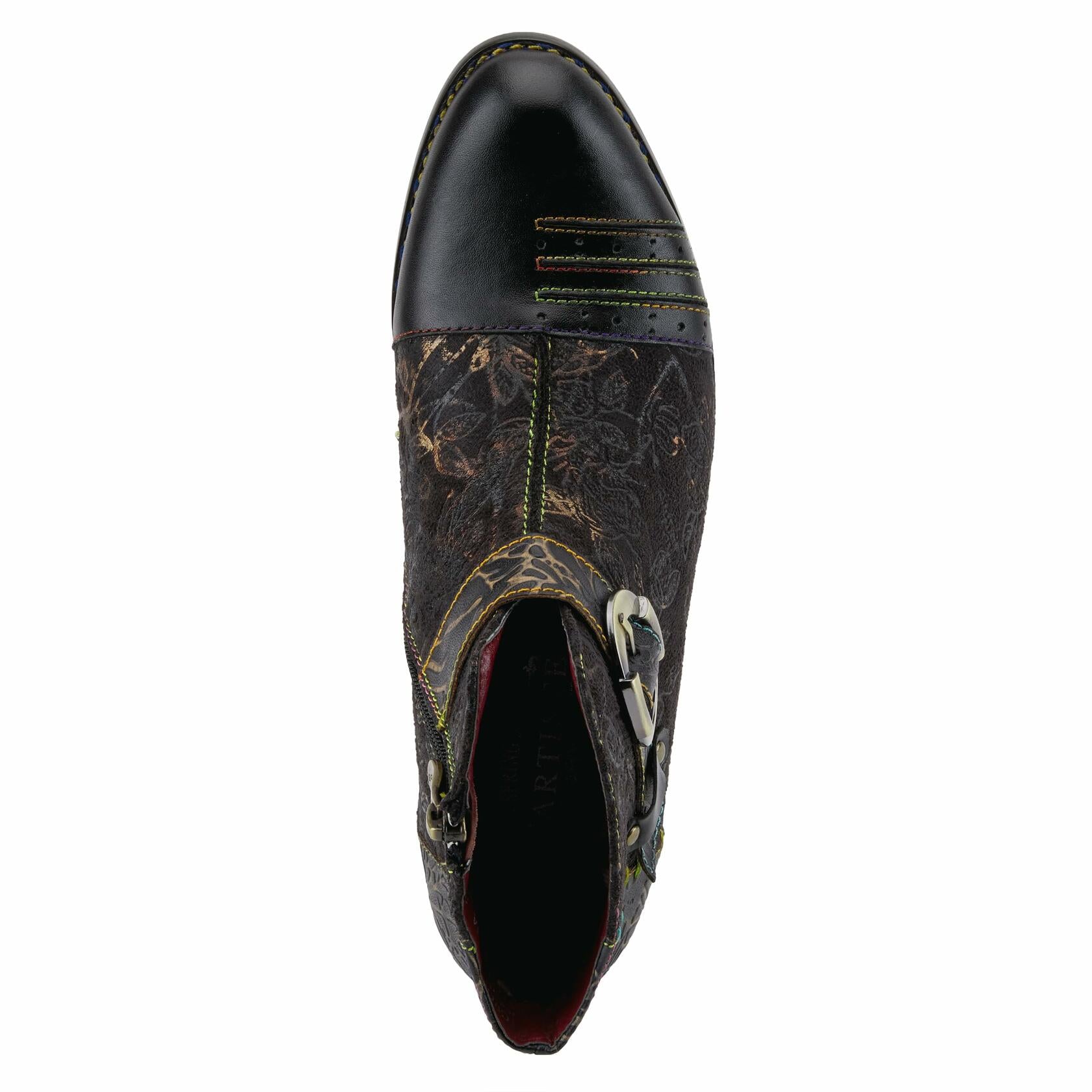 Step into artistry with the L'Artiste Women's Georgiana Chelsea Boot, a French-inspired ankle bootie that blends elegance with bold, handcrafted details. Featuring hand-painted leather and metallic-printed microsuede, this statement piece is adorned with a decorative buckle strap and vibrant rainbow stitching for a truly unique look. A full-length inside zipper ensures easy on-and-off wear, while the padded synthetic leather insole provides superior comfort. Finished with a stacked heel and durable rubber outsole, this boot delivers both style and stability. Perfect for elevating any outfit with a touch of Parisian charm. Disclaimer: LArtiste products are made with natural tanned leather using traditional hand-painting techniques. This unique finishing process creates natural color variations, ensuring an authentic and one-of-a-kind look.