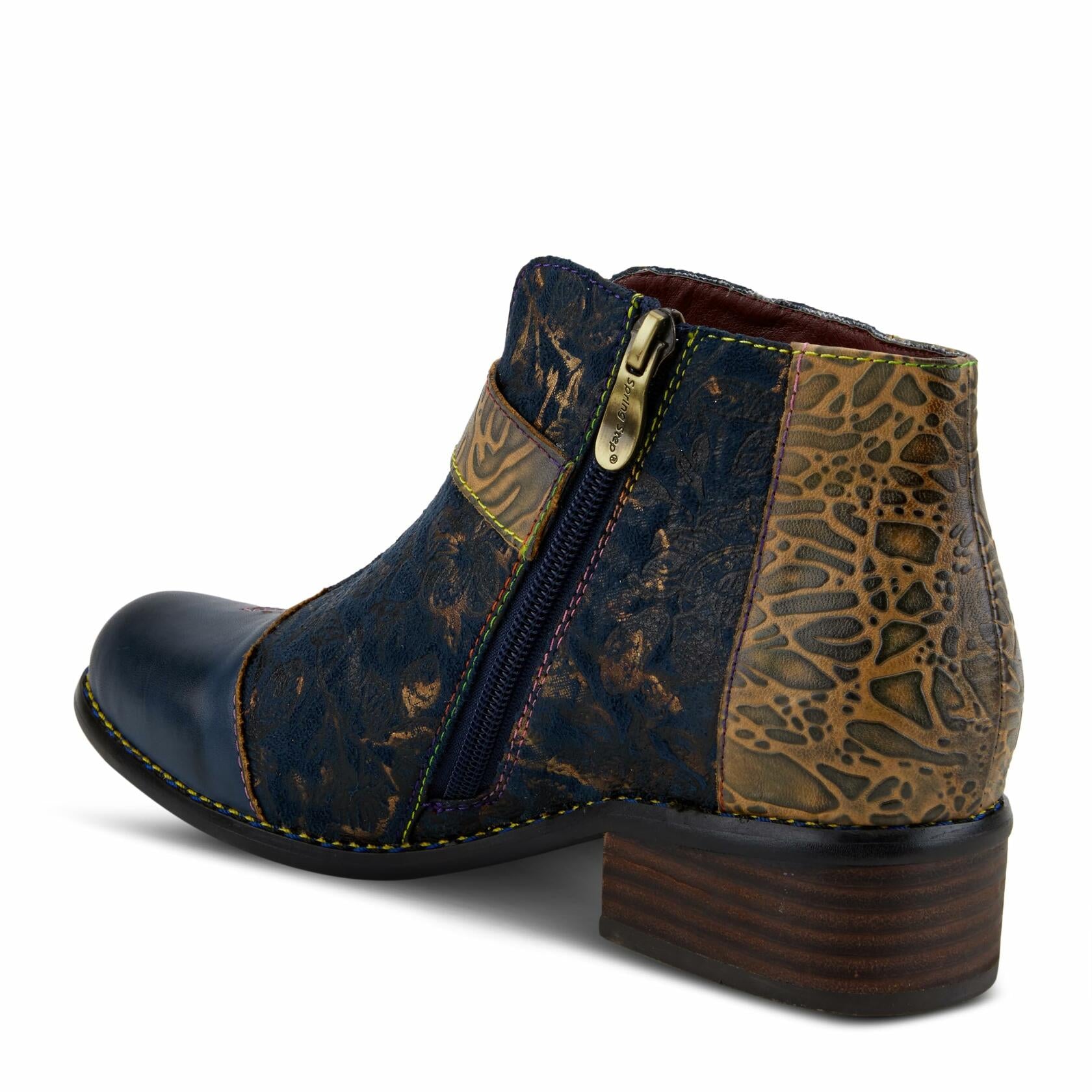 Step into artistry with the L'Artiste Women's Georgiana Chelsea Boot, a French-inspired ankle bootie that blends elegance with bold, handcrafted details. Featuring hand-painted leather and metallic-printed microsuede, this statement piece is adorned with a decorative buckle strap and vibrant rainbow stitching for a truly unique look. A full-length inside zipper ensures easy on-and-off wear, while the padded synthetic leather insole provides superior comfort. Finished with a stacked heel and durable rubber outsole, this boot delivers both style and stability. Perfect for elevating any outfit with a touch of Parisian charm. Disclaimer: LArtiste products are made with natural tanned leather using traditional hand-painting techniques. This unique finishing process creates natural color variations, ensuring an authentic and one-of-a-kind look.