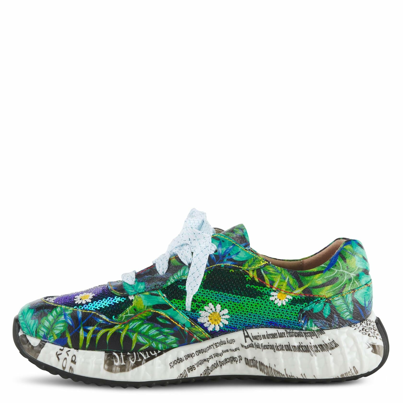 L'Artiste Women's Zingy Lace-Up Fashion Sneakers – Embroidered Leather Casual Sneakers with Adjustable Comfort Fit Green Multi EU 39/8.5