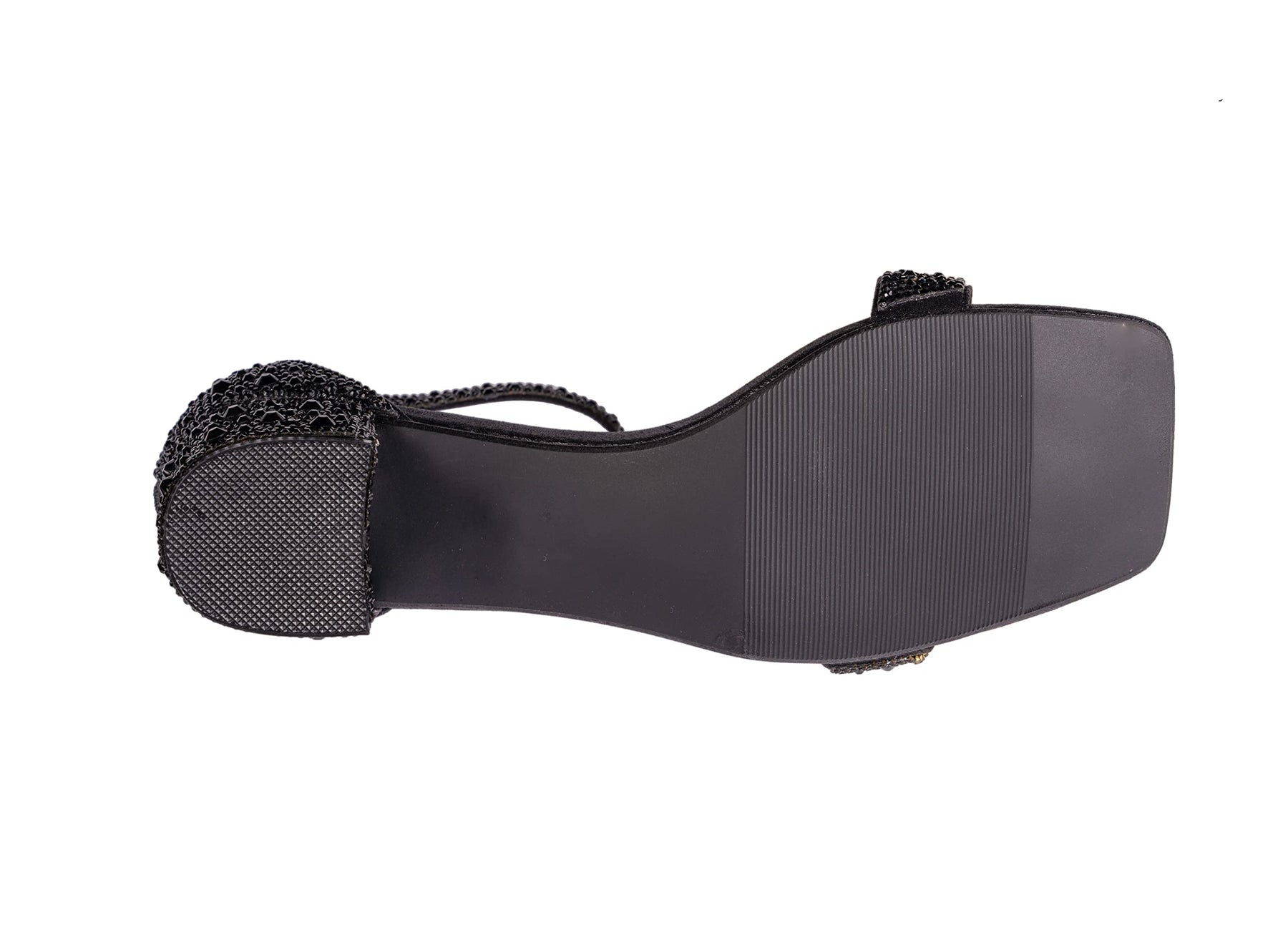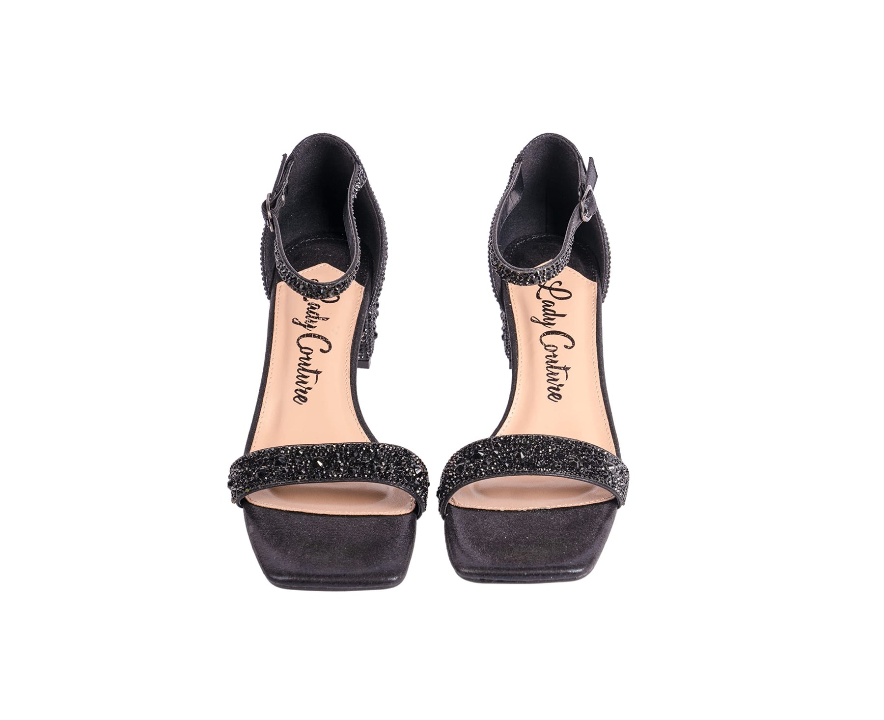 A delicate toe strap, heel and ankle closure is covered in rhinestones. A 2" block heel provides comfort in a chic style.