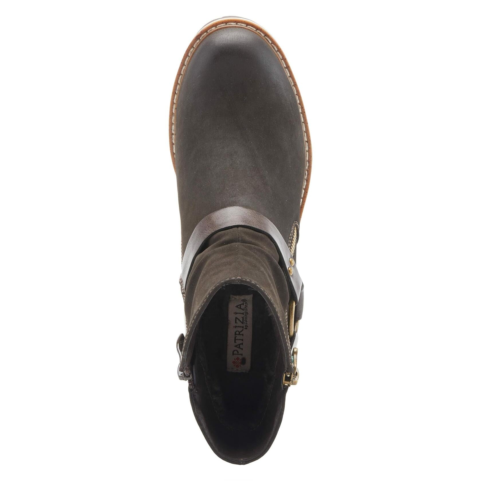 Patrizia Style: Firewood An O-ring harness lends a timeless look, while an decorative outside zipper adds a stylish update to this textured lug sole bootie. A vegan nubuck leather upper burnished at the toe, and stitched welt add a hint of ruggedness and durability. Faux fur lining and insole complete this statement-making bootie. Upper: Vegan Leather Lining: Faux Fur, Synthetic, Textile Insole: Faux Fur, Synthetic, Textile Outsole: TPR Closure: Zipper Heel Height: 2 1/4" Platform Height: 5/8" Shaft Height: 6" Circumference: 9 1/2" Features: - Features: Flexible Sole, Vegan Friendly