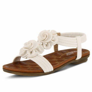 The Patrizia Nectarine T-Strap Sandal features nature-inspired flowers and an elasticized, stretchy slingback strap. Floral t-strap design Slingback strap.