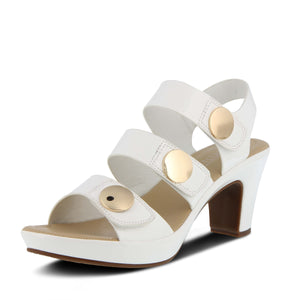 Patrizia Style: TRIODEE Trendy sandal featuring a beautiful wide band design and adjustable hook and loop straps with polished metal ornaments all on a sophistication-inspired, comfort heel with a platform. Heel Height (approximately): 3" Platform Height (approximately): 3/4" Features: - Round Toe. - Heel type: Heel. - Synthetic Lining. - Synthetic Insole. - Rubber Outsole. - Hook and Loop Closure. - Imported.