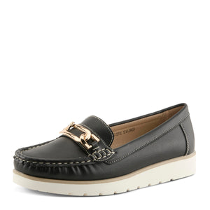 Add a touch of elegance to your everyday style with the Patrizia Women's AZAEL Slip-On Loafers. Perfectly suited for both professional and casual settings, these versatile loafers combine chic design with unmatched comfort. The sleek, minimalist faux leather upper is complemented by a clean white sole for a modern aesthetic. A stylish equestrian-inspired bit detail adds a refined touch, while the cushioned footbed ensures all-day support. The AZAEL loafers provide the perfect blend of fashion and functionality for the modern woman.
