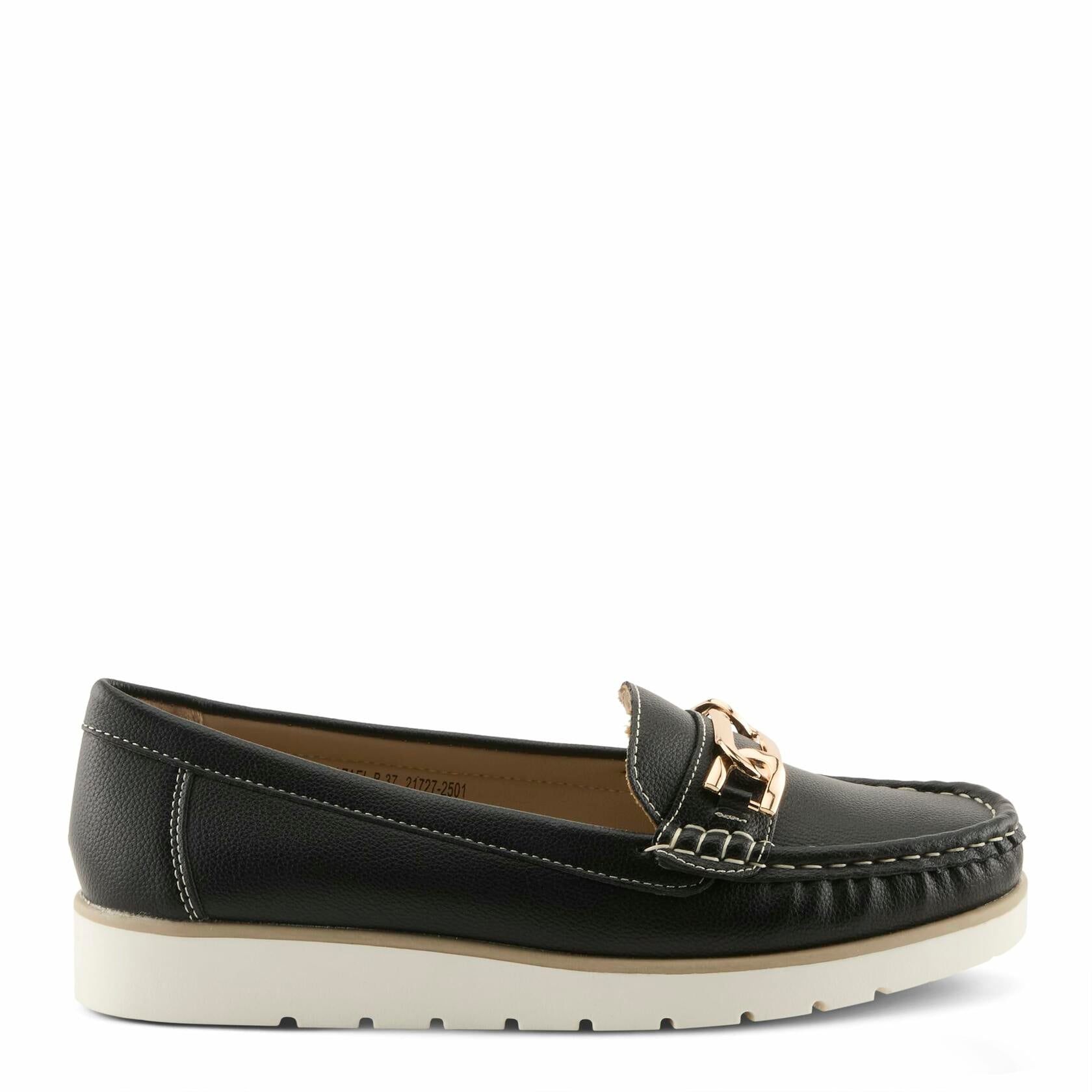 Add a touch of elegance to your everyday style with the Patrizia Women's AZAEL Slip-On Loafers. Perfectly suited for both professional and casual settings, these versatile loafers combine chic design with unmatched comfort. The sleek, minimalist faux leather upper is complemented by a clean white sole for a modern aesthetic. A stylish equestrian-inspired bit detail adds a refined touch, while the cushioned footbed ensures all-day support. The AZAEL loafers provide the perfect blend of fashion and functionality for the modern woman.