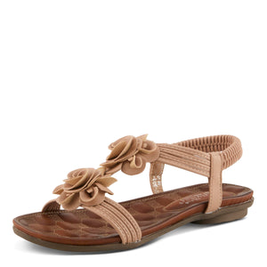 Patrizia Style: DELAMORE Classy criss-cross strapped, open-toe sandal starring beautiful tonal crystals on a comfort blocked heel. Heel Height: 2 1/4" Platform Height: 3/8" Features: - Upper: Synthetic - Lining: Synthetic - Insole: Synthetic - Outsole: Rubber - Closure: Buckle - Accents: Rhinestons - Upper Finishing: Gloss - Heel Type: Block - Toe Type: Almond Toe,Open Toe - Features: Comfort,Elastic,Padded Insole,Vegan Friendly