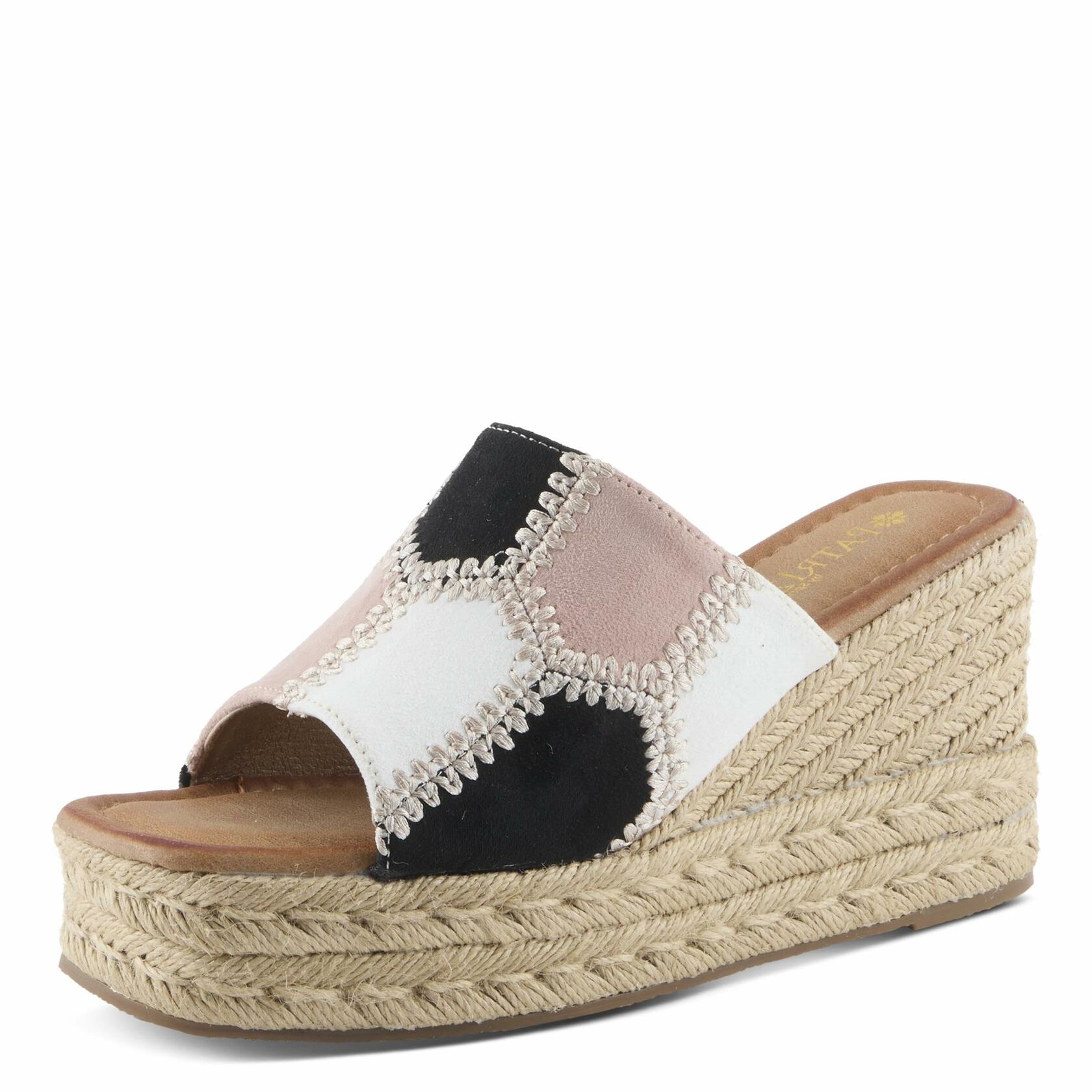 Elevate your style with the Patrizia Women's EVOLET Slide Sandals, the perfect blend of bold design and comfort. Featuring a modern square toe and striking color-blocked details with contrasting zigzag stitching, these sandals make a chic statement. The jute-braided wedge and platform add a natural, on-trend element, while the padded footbed ensures all-day comfort. Whether you're heading out for a night on the town or accentuating your casual look, the EVOLET sandals are your new must-have.