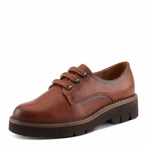 Classic Elegance with Patrizia HAZELINA Oxfords - Burnished finish and elastic laces for a sleek look. Key Features: Upper: Faux Leather, Lining: Faux Leather, Insole: Synthetic Leather, Outsole: EVA, Closure: Lace-up, Heel Height: 1 1/2", Platform Height: 3/4". Fits true to size. EVA lug sole for lightweight traction.