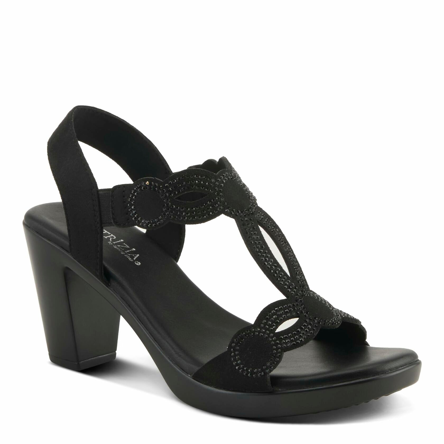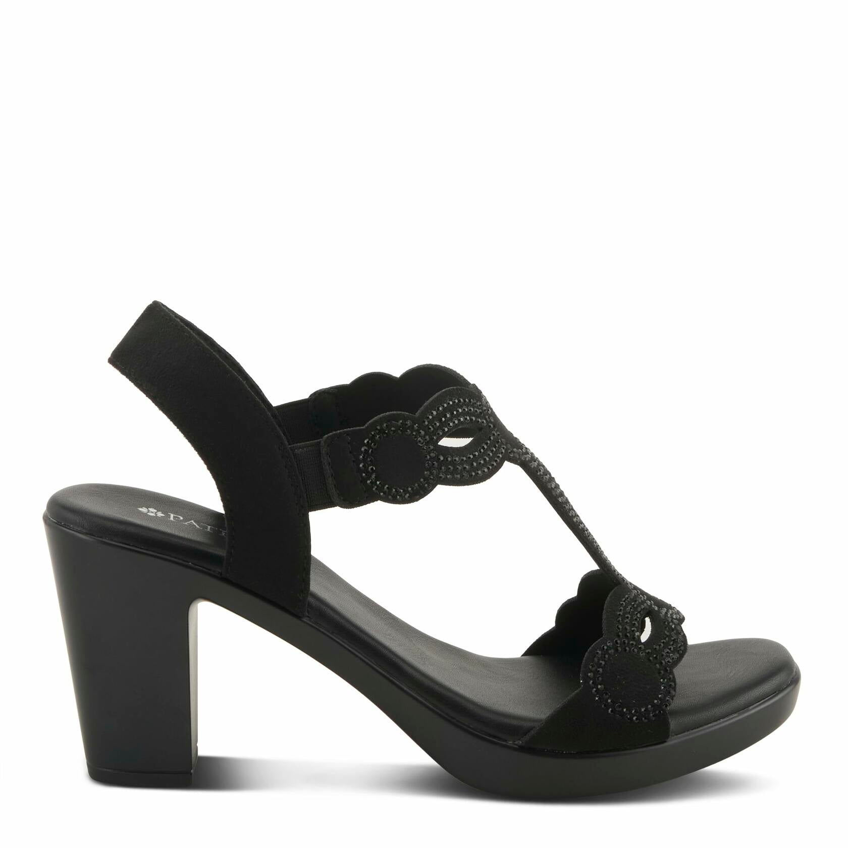 Elevate your style with the Patrizia Women's ILLARA Slip-On T-Strap Heels, the perfect blend of glamour and comfort. Featuring dazzling crystal embellishments and elastic goring for a secure, flexible fit, these heels make a bold statement while ensuring all-day wearability. The cushioned, padded insole and platform heel provide the perfect balance of height and support, making these a must-have addition to your wardrobe for both special occasions and everyday elegance.