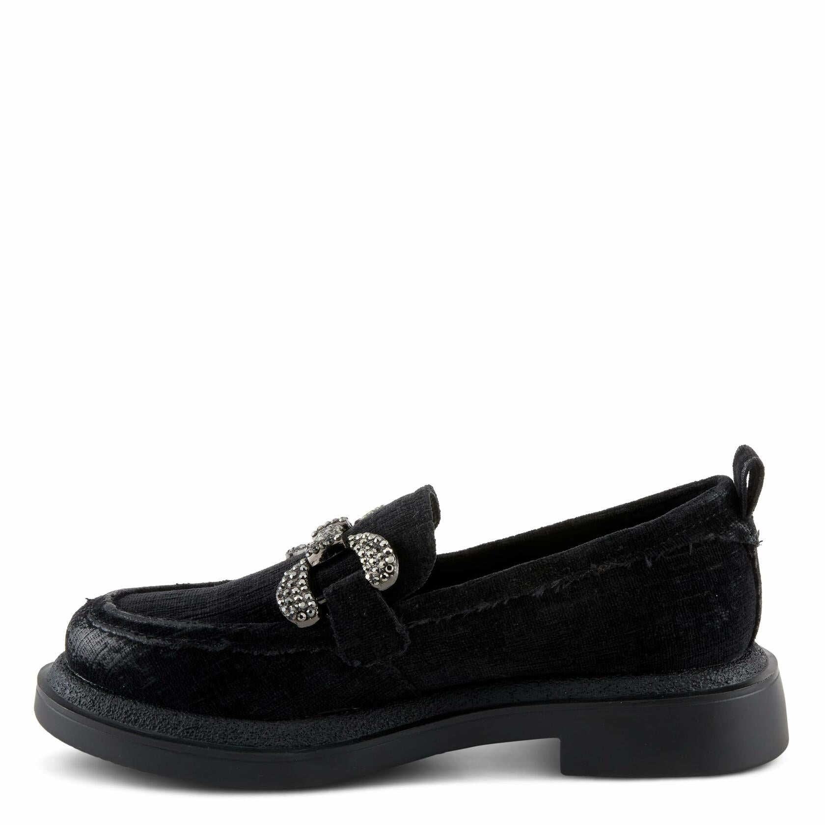 Opulent Comfort with Patrizia MARLEN Velvet Loafers - Velvet upper with metal ornamentation and crystals. Key Features: Upper: Velvet, Lining: Faux Leather, Insole: Synthetic Leather, Outsole: TPR, Closure: Slip-on, Heel Height: 1 1/2", Platform Height: 1". Fits small; size up recommended.