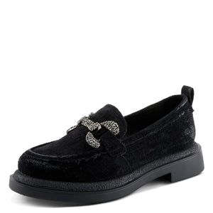Opulent Comfort with Patrizia MARLEN Velvet Loafers - Velvet upper with metal ornamentation and crystals. Key Features: Upper: Velvet, Lining: Faux Leather, Insole: Synthetic Leather, Outsole: TPR, Closure: Slip-on, Heel Height: 1 1/2", Platform Height: 1". Fits small; size up recommended.
