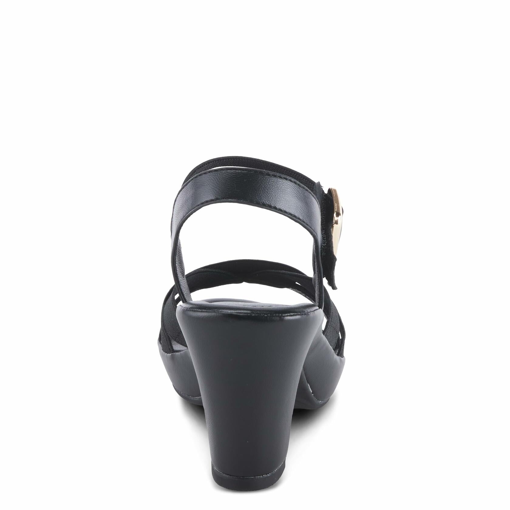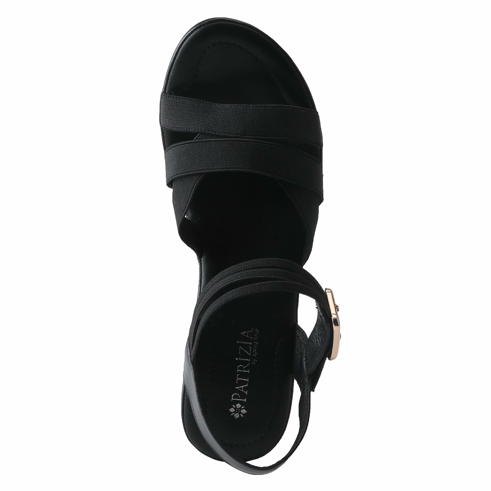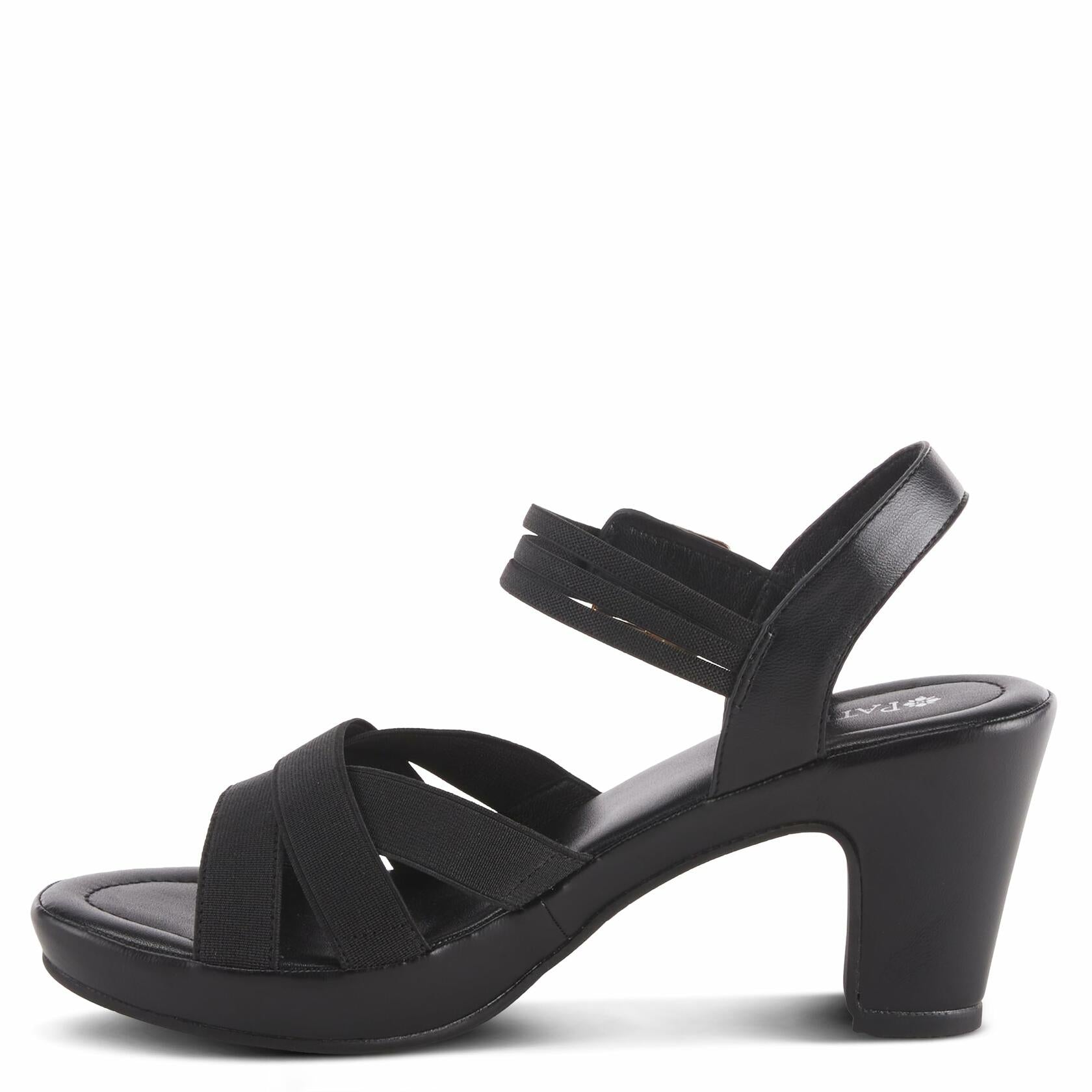 Patrizia Style: NEESA-STRETCH Practical low heel with stretchy elastic ankle and front strap for adjustibility and comfort for daily use. Upper: Synthetic Lining: Synthetic Insole: Synthetic Outsole: Rubber Closure: Buckle Heel Height: 3" Platform Height: 3/4" Features: - Adjustable, Comfort, Elastic, Stretchable