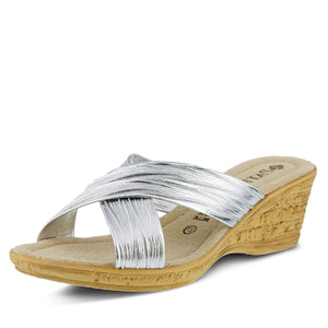 from 0 reviewsPRODUCT DESCRIPTIONPatrizia Style Marge: Classic CollectionFeatures:1. Beautiful cross strap slide sandal.2. Classic pleated straps give this style a charming look. 3. Leather lined padded footbed.4.