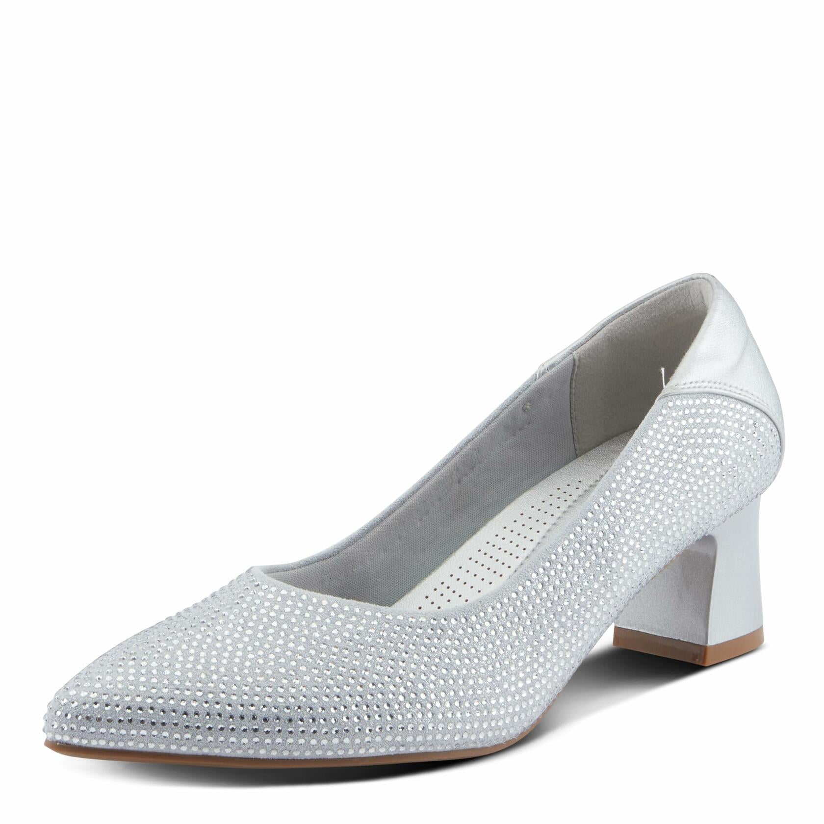 Glamorous Comfort with Patrizia SENNA Block Heel Pumps - Elegant pointy-toe silhouette with shimmering crystals. Key Features: Upper: Textile, Faux Leather, Jeweled, Lining: Textile, Insole: Synthetic Leather, Outsole: TPR, Closure: Slip-on, Heel Height: 2". Pointy toe silhouette for a classic look. Delicate crystals and a smooth counter heel for a striking contrast. Sturdy block heel for all-day wear.