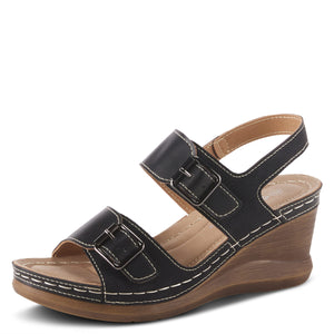 Patrizia Style: TAVLIN Comfortable wedge sandal with a back strap and buckle hook and loop straps that go across for security of the foot all day long. Upper: Synthetic Lining: Synthetic Insole: Synthetic Outsole: Polyurethane Closure: Hook&Loop Heel Height: 2.75" Platform Height: 1" Features: - Adjustable, Comfort