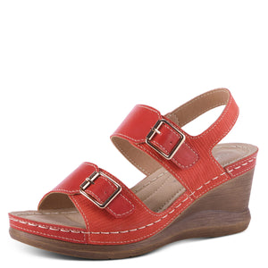Patrizia Style: TAVLIN Comfortable wedge sandal with a back strap and buckle hook and loop straps that go across for security of the foot all day long. Upper: Synthetic Lining: Synthetic Insole: Synthetic Outsole: Polyurethane Closure: Hook&Loop Heel Height: 2.75" Platform Height: 1" Features: - Adjustable, Comfort