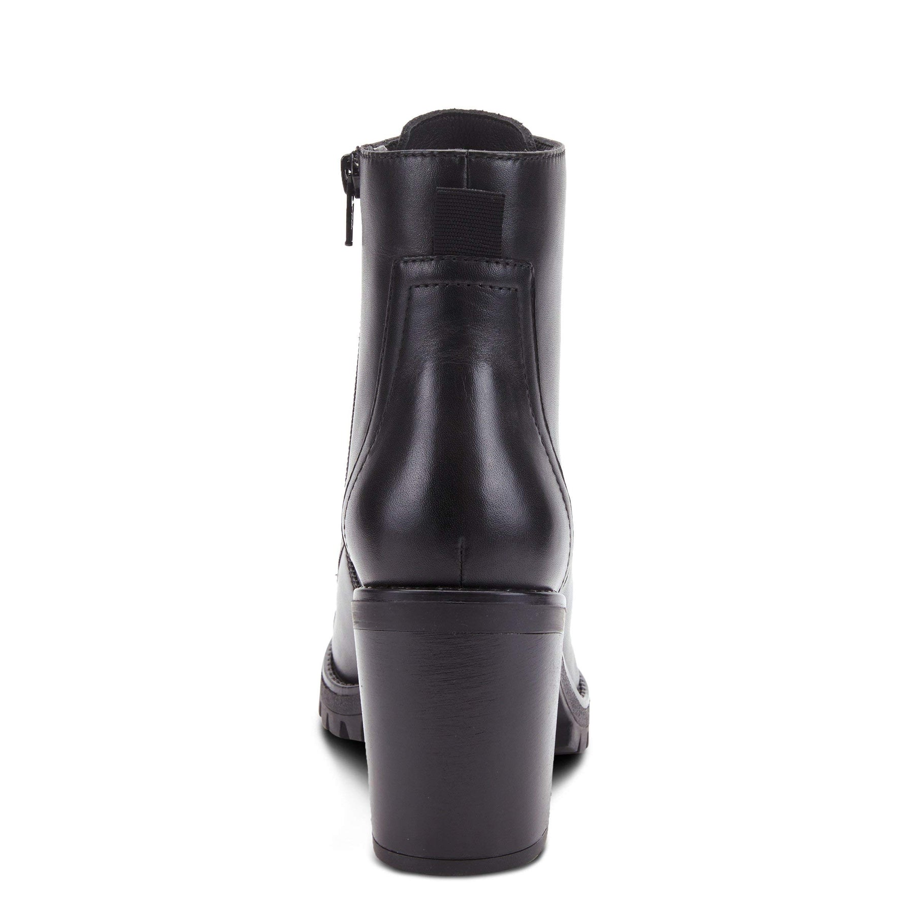SpringStep Style: DAMARYS Utility-inspired high quality leather cap toe bootie featuring lace-up closure for adjustability and inside zipper for easy on/off on lug platform sole and chunky heel. Attributes: